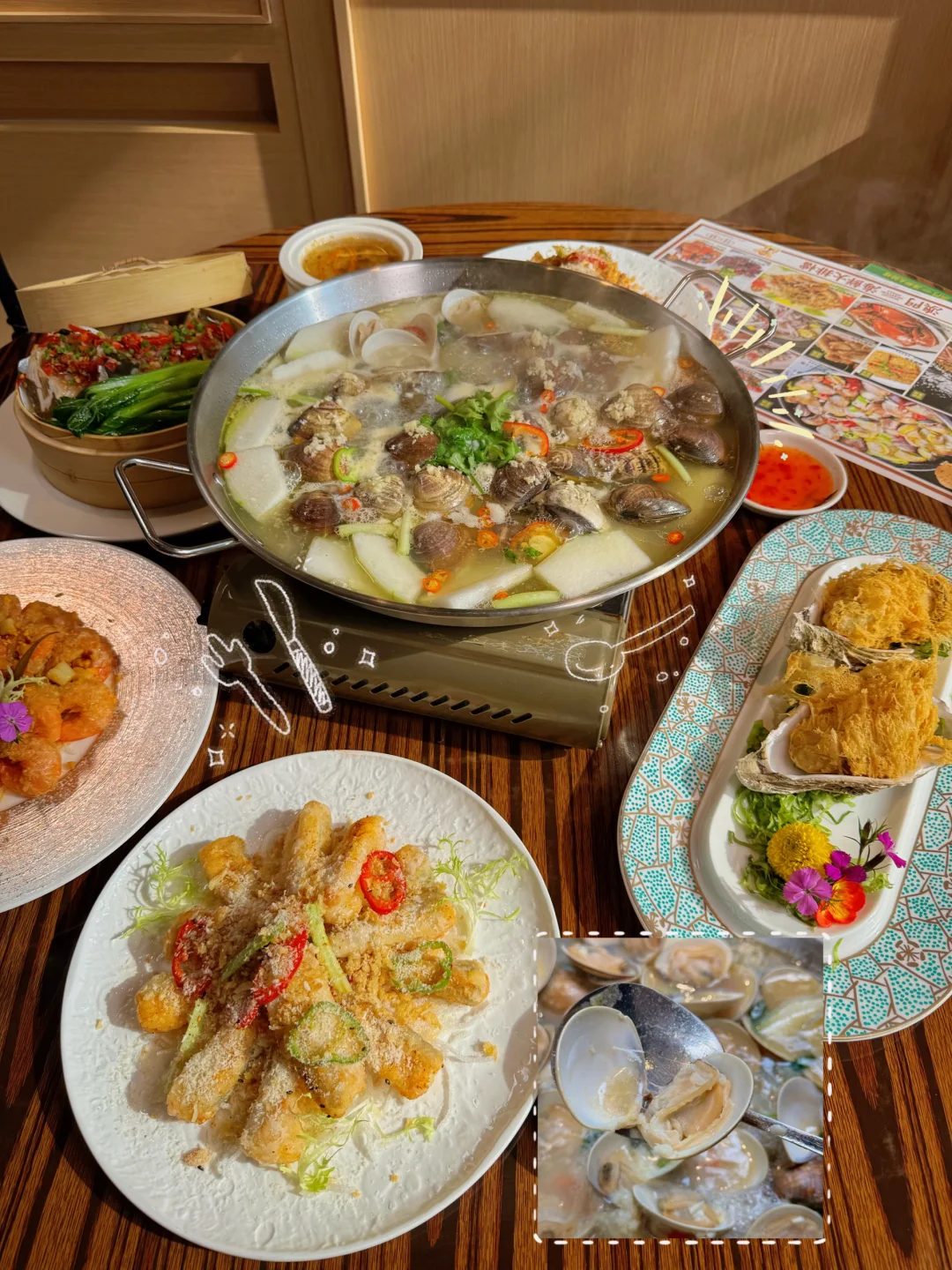 在澳门新马路旁,藏着这家本地人私藏的深夜食堂,现点现殺,镬气十足! 🍤咸蛋黄焗海虾:咸香沙沙的蛋黄裹住弹嫩虾肉,双重口感在嘴里炸开。 🦪酥炸生蚝:轻薄外壳带着焦香,内里软嫩爆汁,好吃极了。 🍚龙仔蒸鱼头饭:鱼头嫩润不腥,鲜辣酱汁浸透米饭,香到光盘 🐚卜卜贝:贝肉鲜甜饱满,汤底清爽回甘,暖到胃里 🐟椒盐九肚鱼:外皮焦脆,鱼肉入口即化,咸香上头 🌽椒盐玉米:咸甜焦香,颗颗入味,解腻神器 📍澳门海鲜大排档