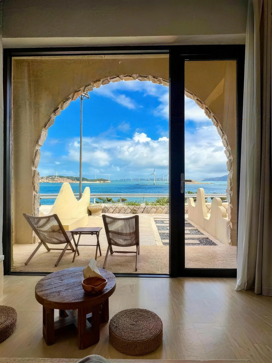 房间是正儿八经 180° 无敌海景🌊 躺在床上直接看日出,幸福感拉满~ 出门不到 50 米就是沙滩,赶海、看海都超方便!听着海浪声睡觉,天然白噪音太治愈了~下午在泳池边躺躺,再来杯现磨咖啡☕惬意到不想回城! 房间干净舒服、床品软软的🛏️细节做得超到位,住着特别安心。爱拍照的姐妹直接冲,民宿里的咖啡馆颜值巨高,随手一拍都是大片!出门就是海,风景 + 氛围双在线✨ 想找海景好、服务棒、拍照出片的度假地来平潭这家真的不亏!