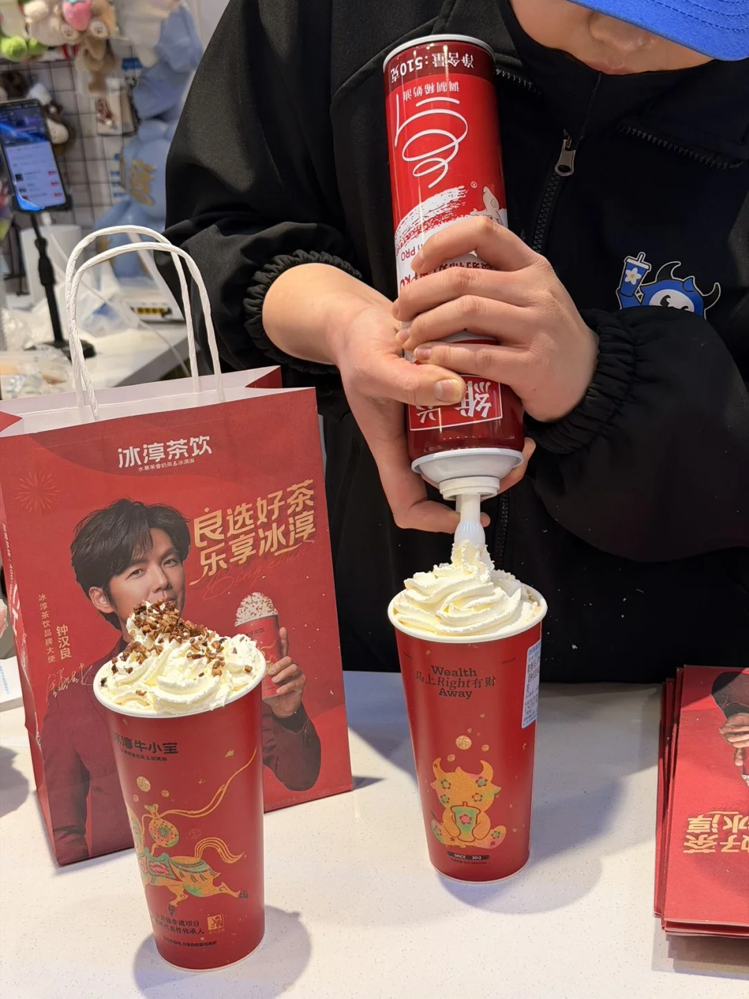 我就是想喝个奶茶🧋谁知道还送哇哥小卡呀!性价比已经这么高了!!咱就是说,除了冰淳谁还这么宠我!! 新春套餐直接和非遗剪纸梦幻联动!那叫一个杯子都舍不得扔!好好看的红彤彤!! ♥️布蕾脆脆奶芙!一整颗的烤布蕾🍮➕QQ弹弹的珍珠➕超多碧根果碎,吼吼喝!!点热的!! ♥️山野幽兰!会清爽一点!红茶底适合冬天呢!三分糖就很好喝了! 套餐二还有巨萌小黑马送!通通都想抱回家呢!