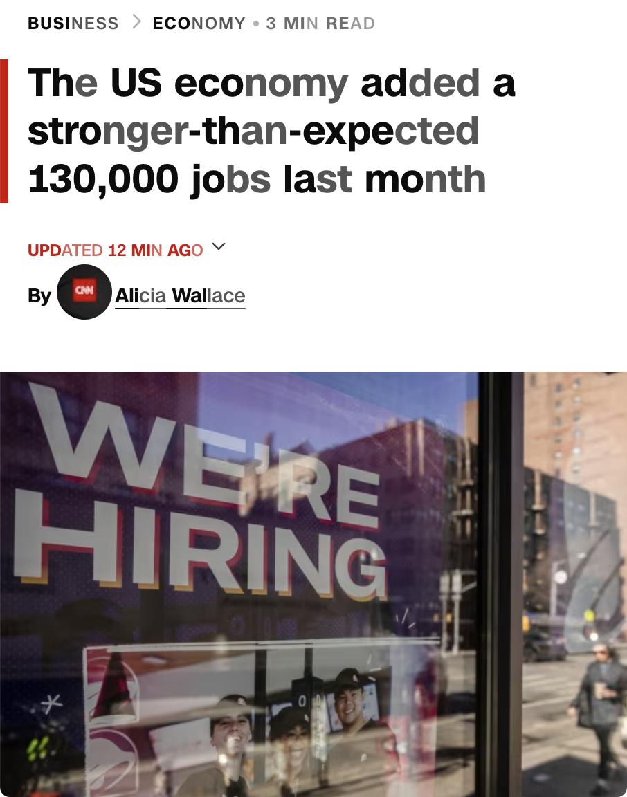 美媒:美国经济在2026年1月新增了130,000个工作岗位,远超经济学家此前预