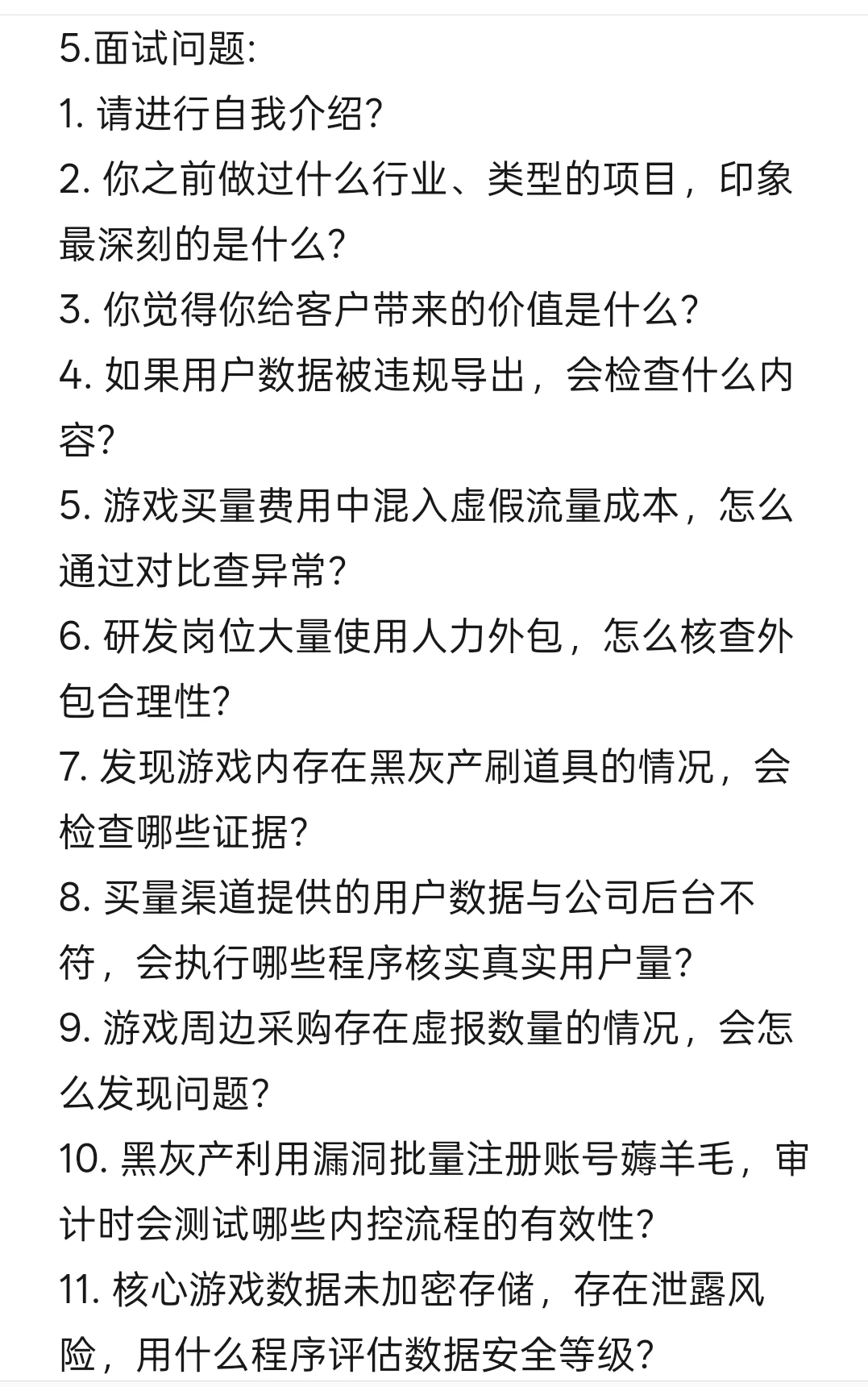 2.公司岗位&学员背景:31岁,四大ra经理第二年,男,未婚未育 有一定的it能力,做过比较多的互联网项目,有一定的经验匹配度,不过在面试中被深挖简历和场景问题还是挺难的,面出一身冷汗,还好面试前有好好梳理过往经验好提前准备一些业务场景问题。