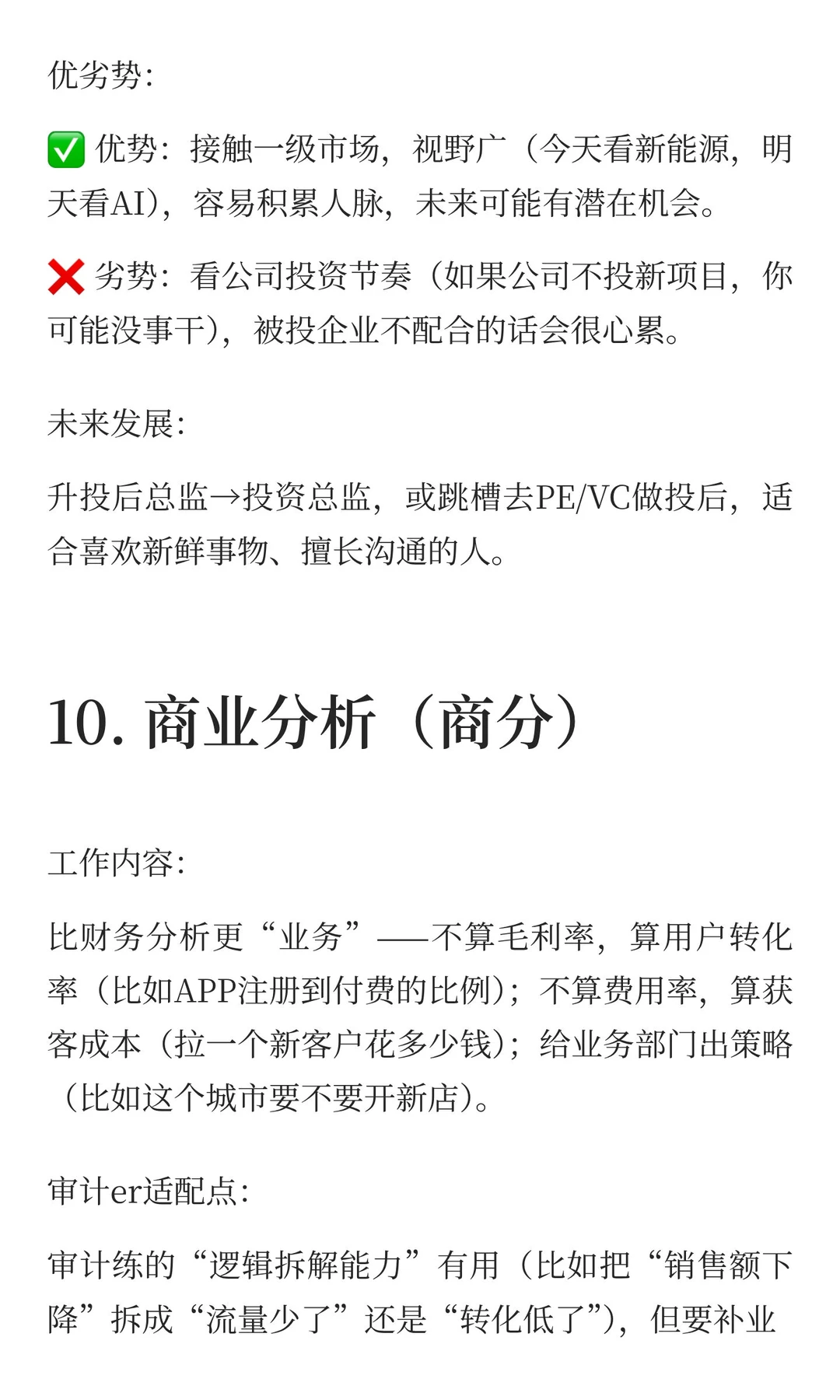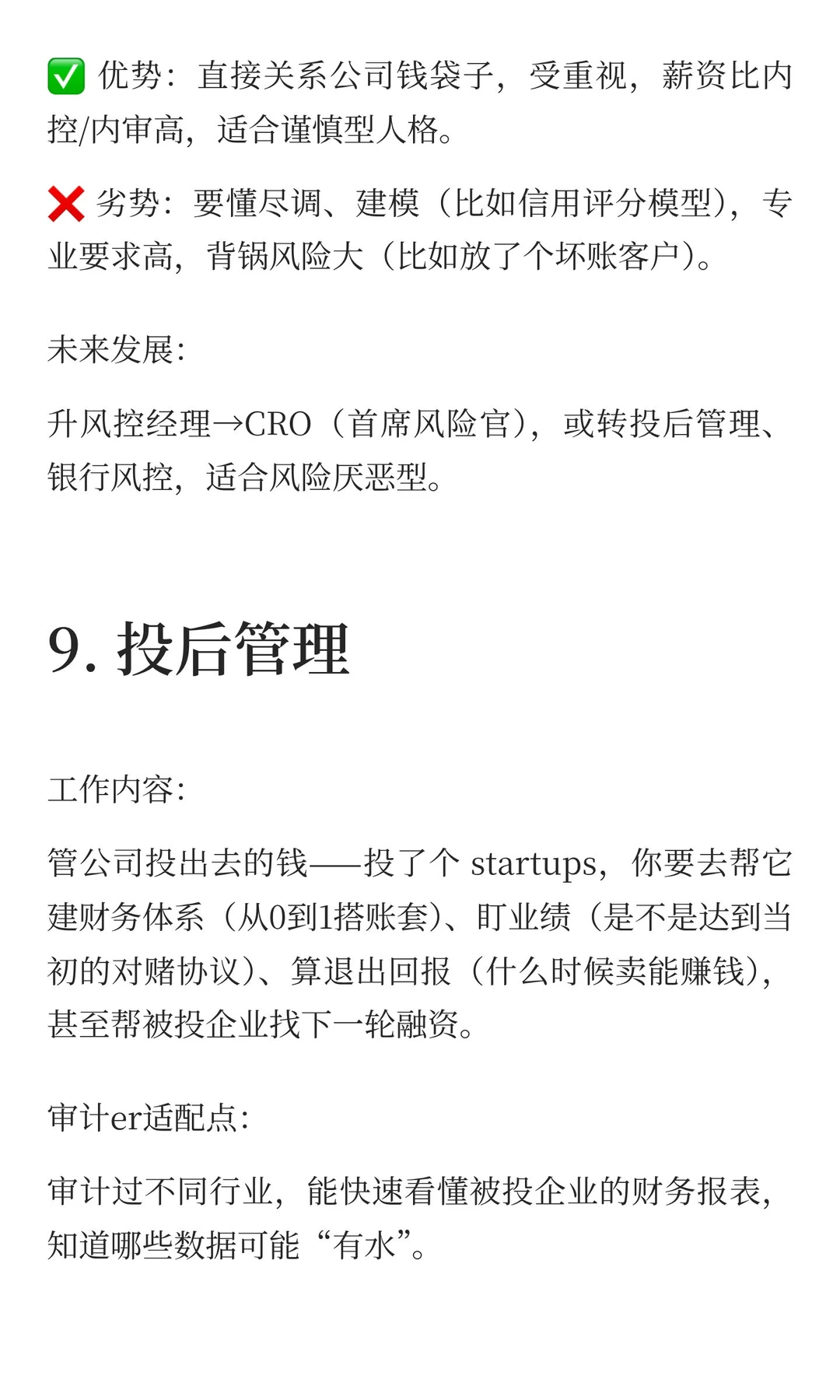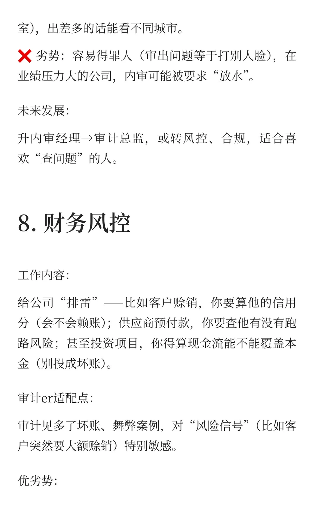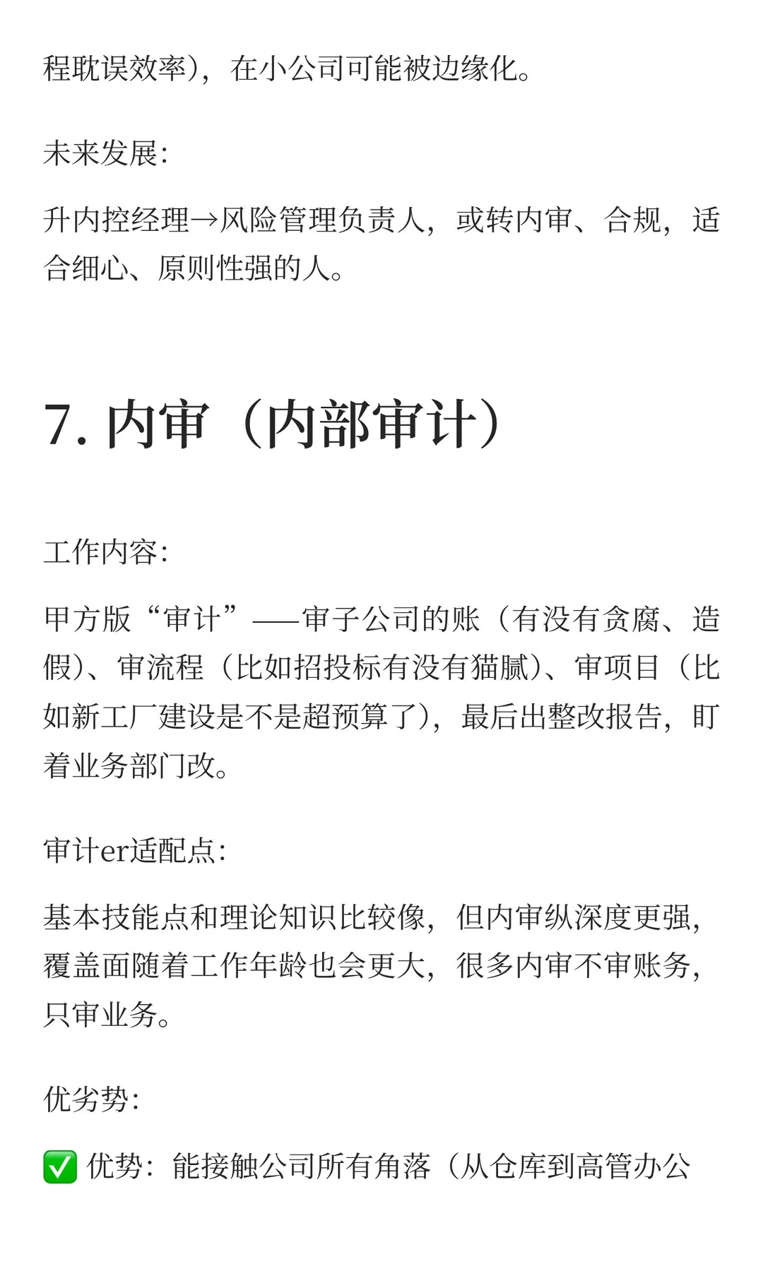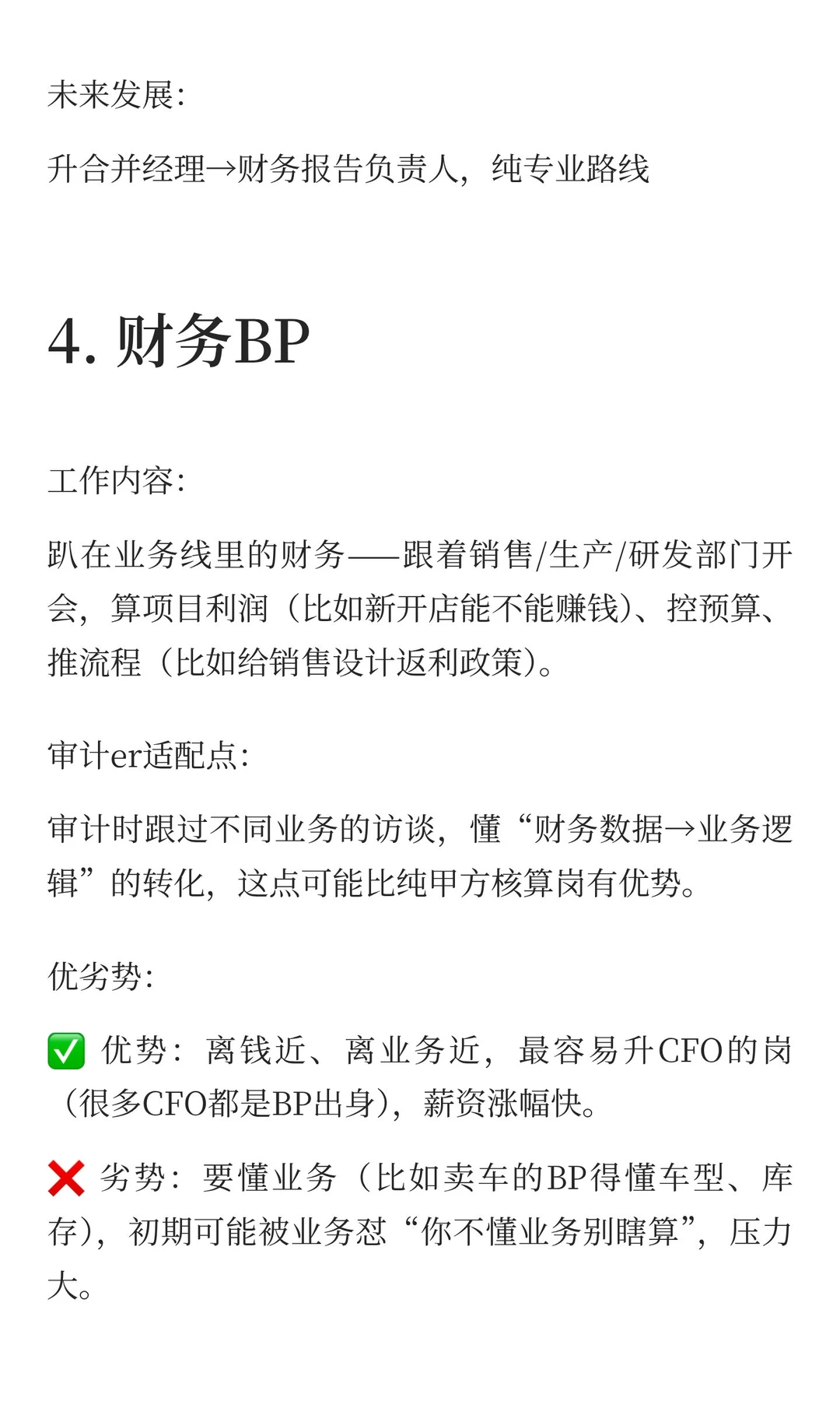财务岗位包括核算、总账、合并报表、财务BP、财务分析、内控、内审、风控、投后、商业分析等,各有优劣势和发展路径,我们均有学员辅导上岸经验。