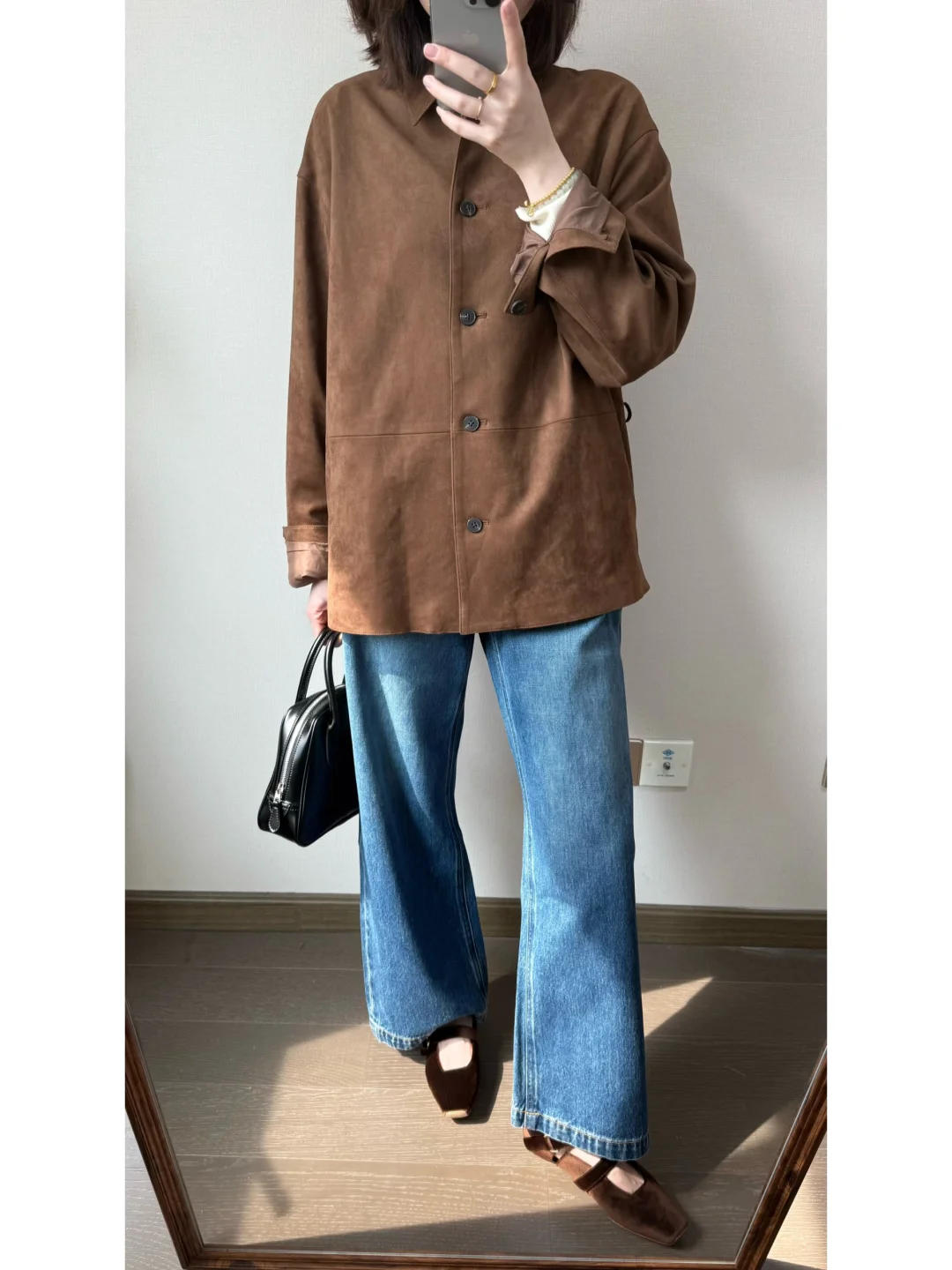 把糖炒栗子穿上身 cleanfit简单出门 极简穿搭 通勤穿搭 麂皮绒 复古皮衣 早秋穿搭