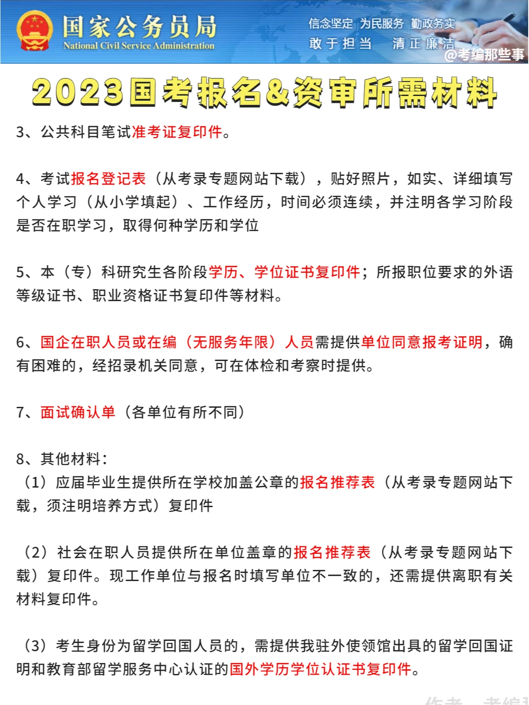 📍国考报名材料: