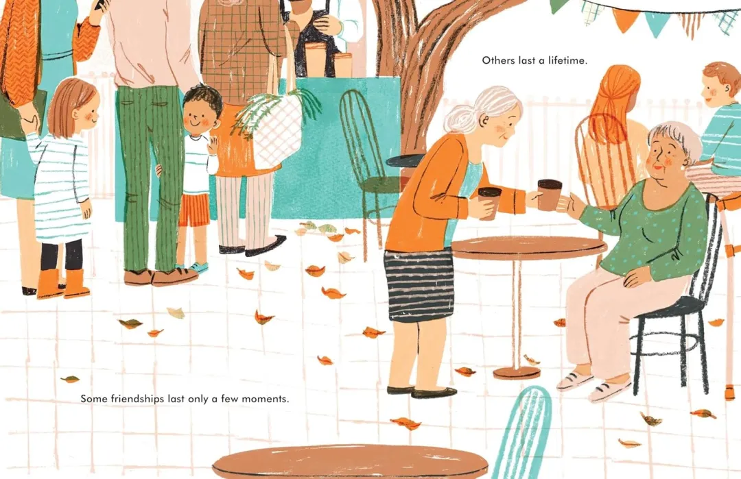 以 “友谊” 为核心,用温暖而细腻的方式展现了友谊的丰富形态:有相伴多年的老朋友,有刚刚相识的新朋友,也有那些能跨越时光、陪伴一生的挚友。它告诉读者,友谊从不局限于某一种模样 —— 无论他们是谁、在哪里相遇,或是在彼此生命中扮演着怎样的角色,每一段友谊都值得被珍视。