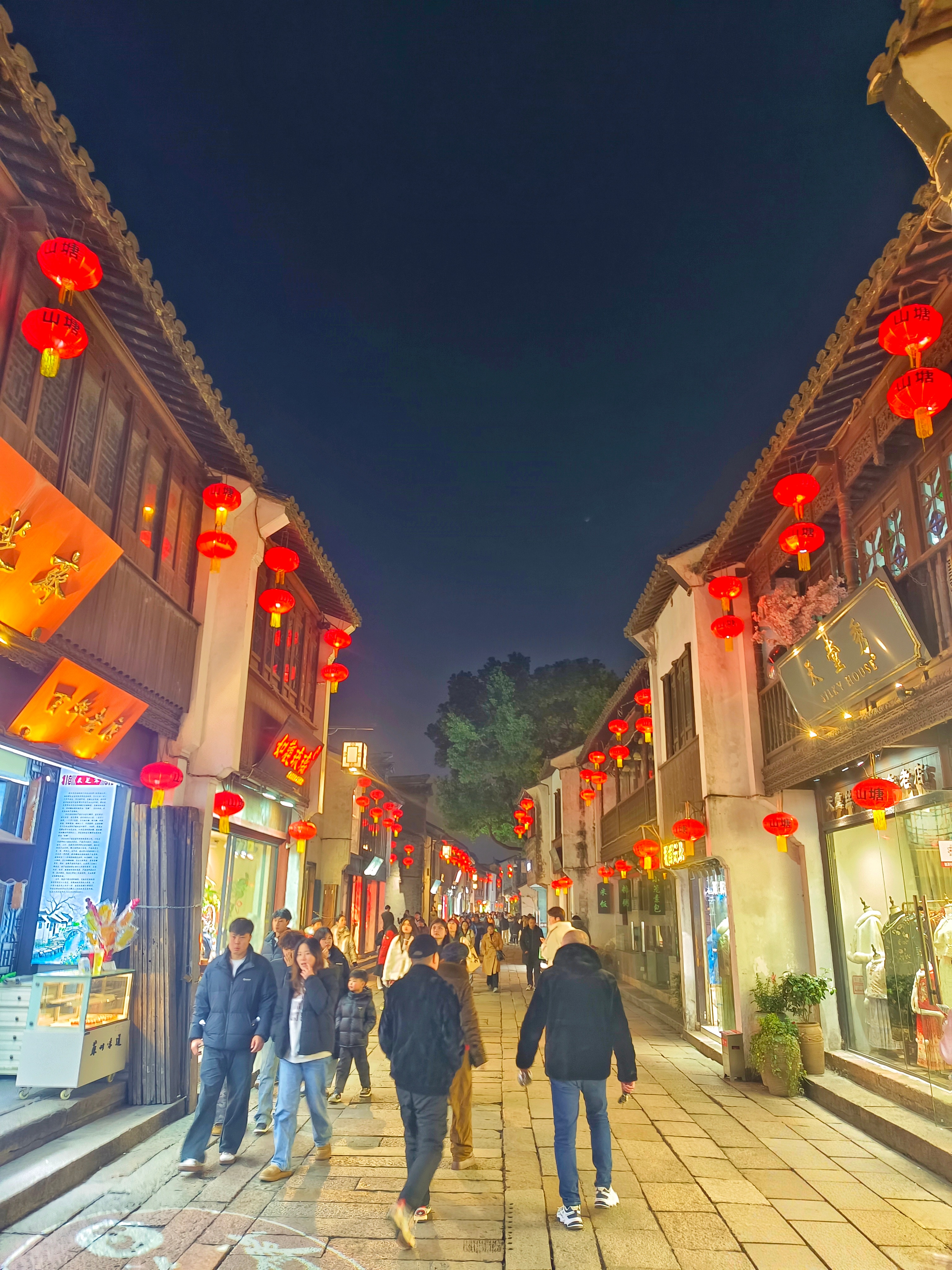 糕点飘香、苏绣精巧,老店与古宅相依,慢时光里,都是最地道的苏州烟火。五、日暮山塘:灯火千年,温柔依旧傍晚时分,红灯笼次第亮起,倒映在河面,流光摇曳。清代诗人蔡云笔下“七里山塘七里船,船船笙笛夜喧天”的繁华景象,仿佛跨越时空,重现眼前。远眺虎丘塔影朦胧,“虎丘月色为谁好,娃宫花枝应自开”,千年风月,依旧温柔。六、游后感今日一游山塘,走过的不只是一条古街,更是一部浓缩的苏州史:有唐代白居易开河筑堤的仁心,有宋代桥影波光的文雅,有明清商贾云集的鼎盛,有忠义之士的气节,有帝王留题的风雅。七里山塘千首诗,一河碧水万年姿。它藏着江南最温柔的模样,也载着千年不曾褪色的底蕴。来过七里山塘,才算真正懂得:上有天堂,下有苏杭。 苏州·苏州七里山塘景区