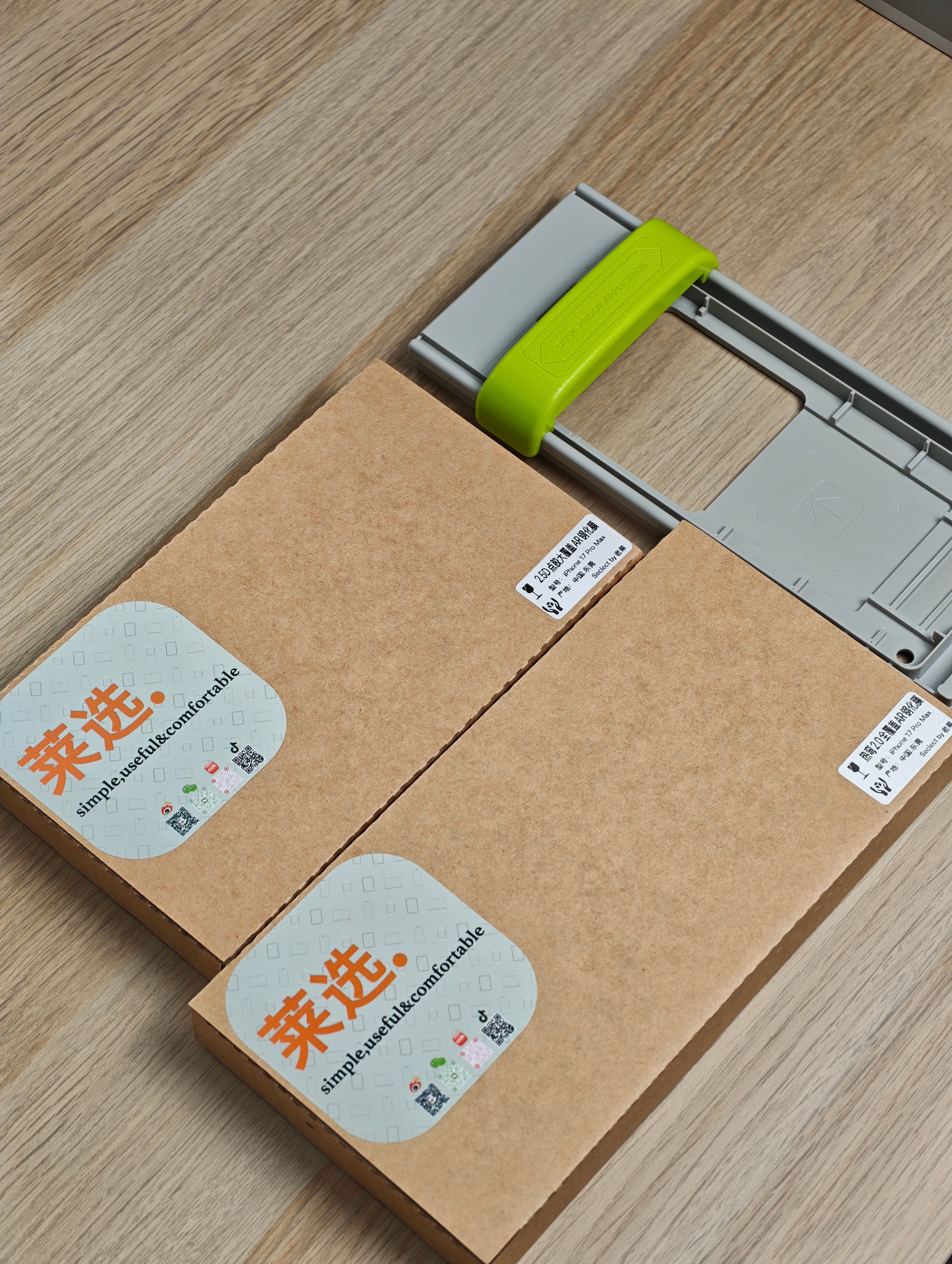 莱选今年给 iPhone 17 Pro Max 的两套钢化膜,一套 2.5D 点胶大覆盖、一套 3D 热弯,都是 AR 膜