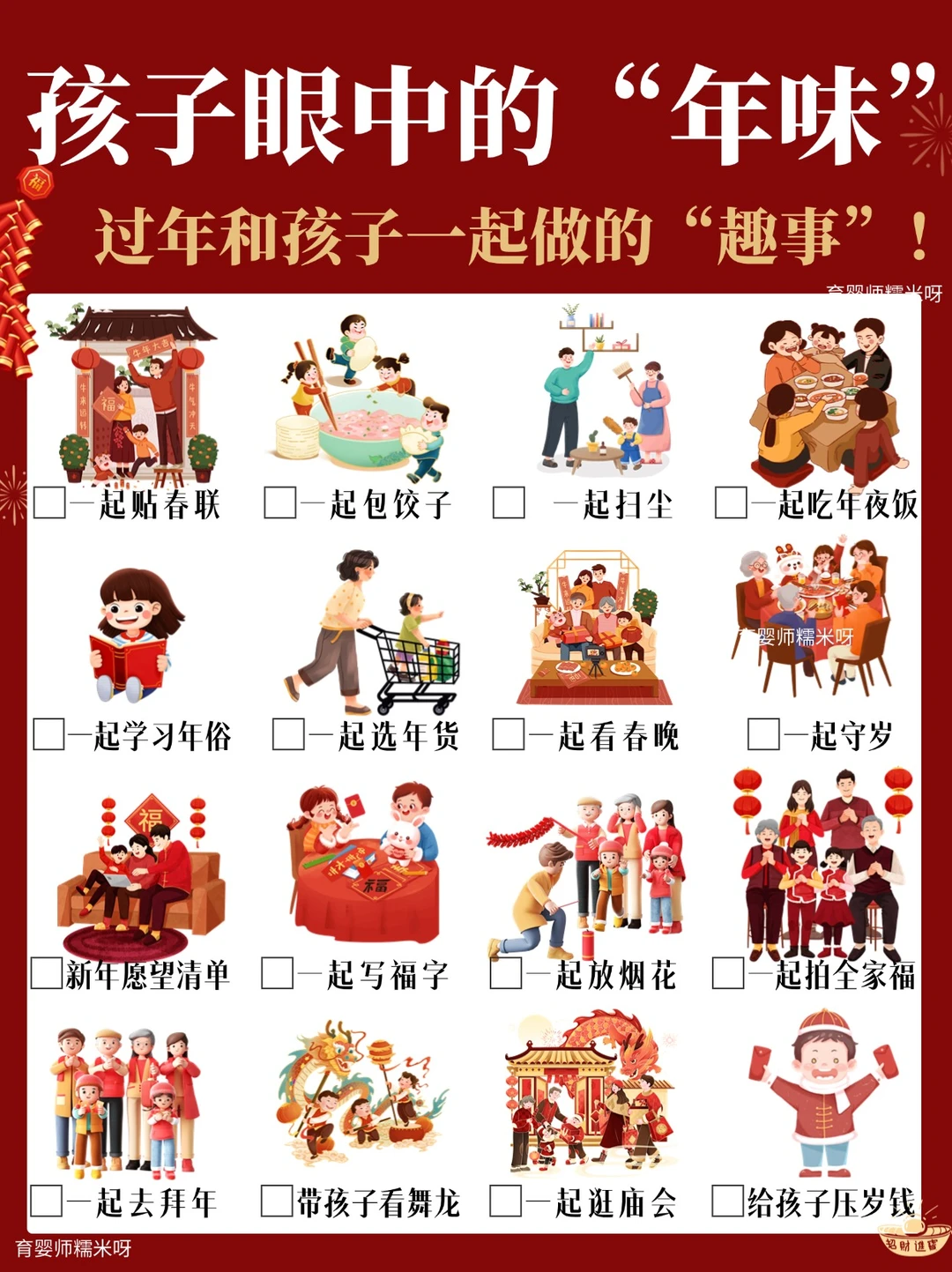 [彩虹R]马上过年了,家里的神兽们都放假了吧 今天整理了春节期间可以和孩子一起做的16件趣事,还原孩子眼中的年味👏 赶紧收藏起来和孩子一起做吧!