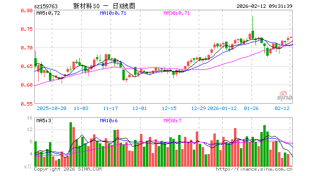 2月12日,新材料ETF建信(159763)开盘涨0.14%,报0.725元。新材料ETF建信(159763)重仓股方面,北方华创开盘涨0.53%,宁德时代涨0.54%,万华化学跌0.06%,隆基绿能涨0.00%,华友钴业涨2.25%,天赐材料跌1.23%,三环集团涨0.63%,通威股份涨0.00%,三安光电涨0.00%,宝丰能源涨0.00%。