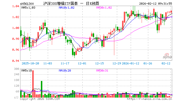 沪深300增强ETF国泰(561300)业绩比较基准为沪深300指数收益率,管理人为国泰基金管理有限公司,基金经理为吴中昊、梁杏,成立(2021-12-01)以来回报为2.78%,近一个月回报为0.36%。