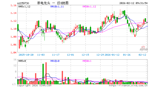 2月12日,家电ETF博时(159730)开盘跌0.18%,报1.115元。家电ETF博时(159730)重仓股方面,三花智控开盘跌0.31%,格力电器跌0.21%,美的集团跌0.29%,海尔智家涨0.04%,德业股份涨0.00%,科沃斯涨0.31%,石头科技跌0.05%,公牛集团涨0.00%,海信家电涨0.29%,老板电器跌0.05%。