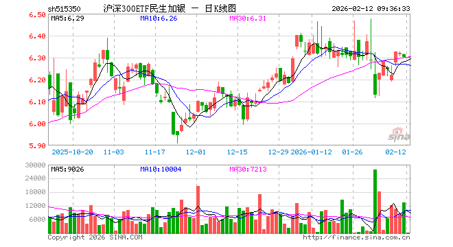 2月12日,沪深300ETF民生加银(515350)开盘涨0.00%,报6.302元。沪深300ETF民生加银(515350)重仓股方面,宁德时代开盘涨0.54%,贵州茅台跌0.27%,中国平安涨0.15%,中际旭创涨0.58%,紫金矿业涨0.23%,招商银行涨0.00%,新易盛涨0.37%,美的集团跌0.29%,兴业银行涨0.00%,长江电力涨0.00%。