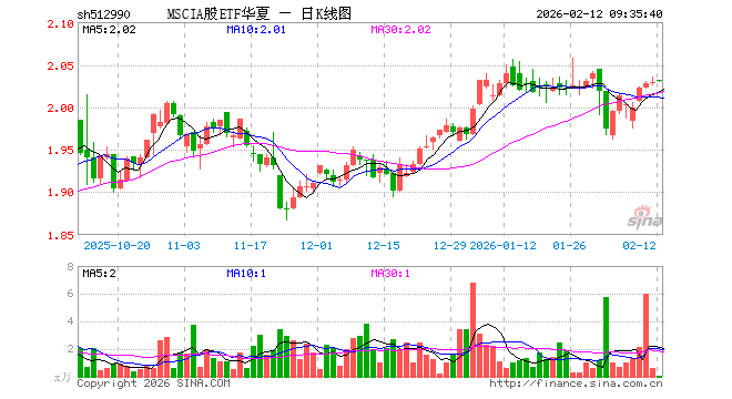 2月12日,MSCIA股ETF华夏(512990)开盘涨0.10%,报2.031元。MSCIA股ETF华夏(512990)重仓股方面,贵州茅台开盘跌0.27%,宁德时代涨0.54%,招商银行涨0.00%,工业富联涨0.27%,中国平安涨0.15%,紫金矿业涨0.23%,中际旭创涨0.58%,长江电力涨0.00%,农业银行涨0.00%,寒武纪涨0.10%。