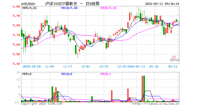 2月12日,沪深300ETF国联安(515660)开盘跌0.05%,报5.834元。沪深300ETF国联安(515660)重仓股方面,宁德时代开盘涨0.54%,贵州茅台跌0.27%,中国平安涨0.15%,中际旭创涨0.58%,紫金矿业涨0.23%,招商银行涨0.00%,新易盛涨0.37%,美的集团跌0.29%,兴业银行涨0.00%,长江电力涨0.00%。