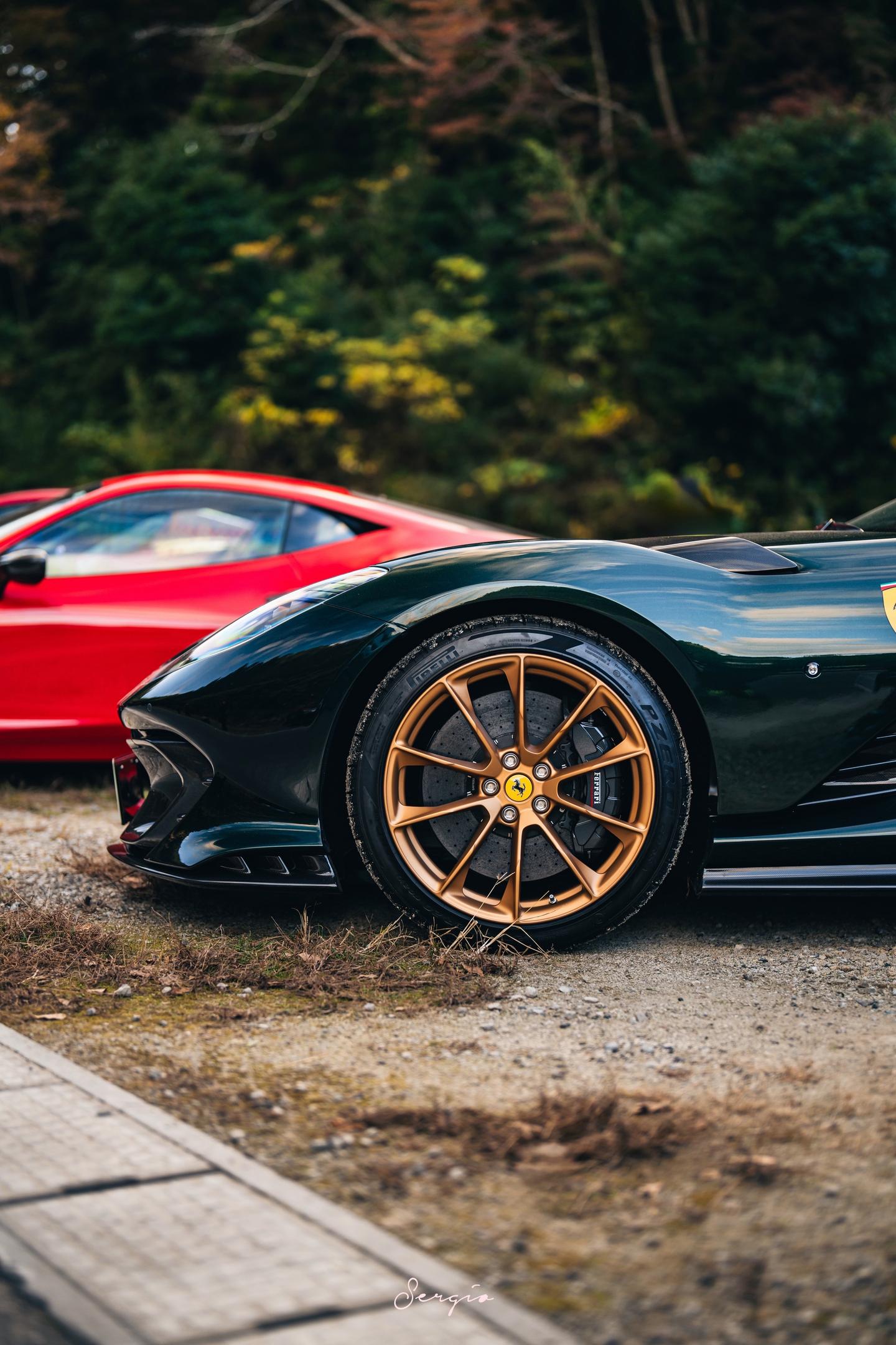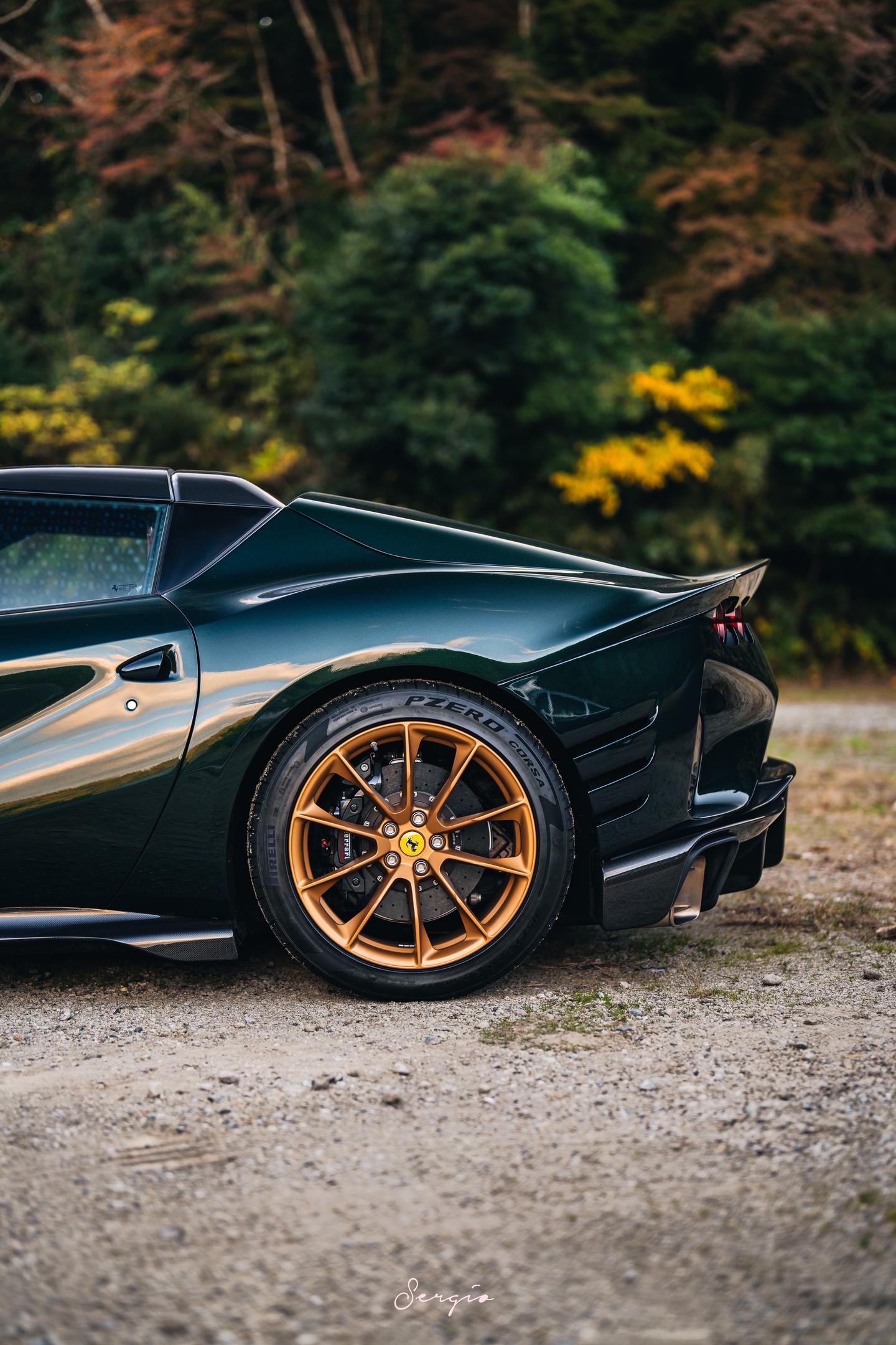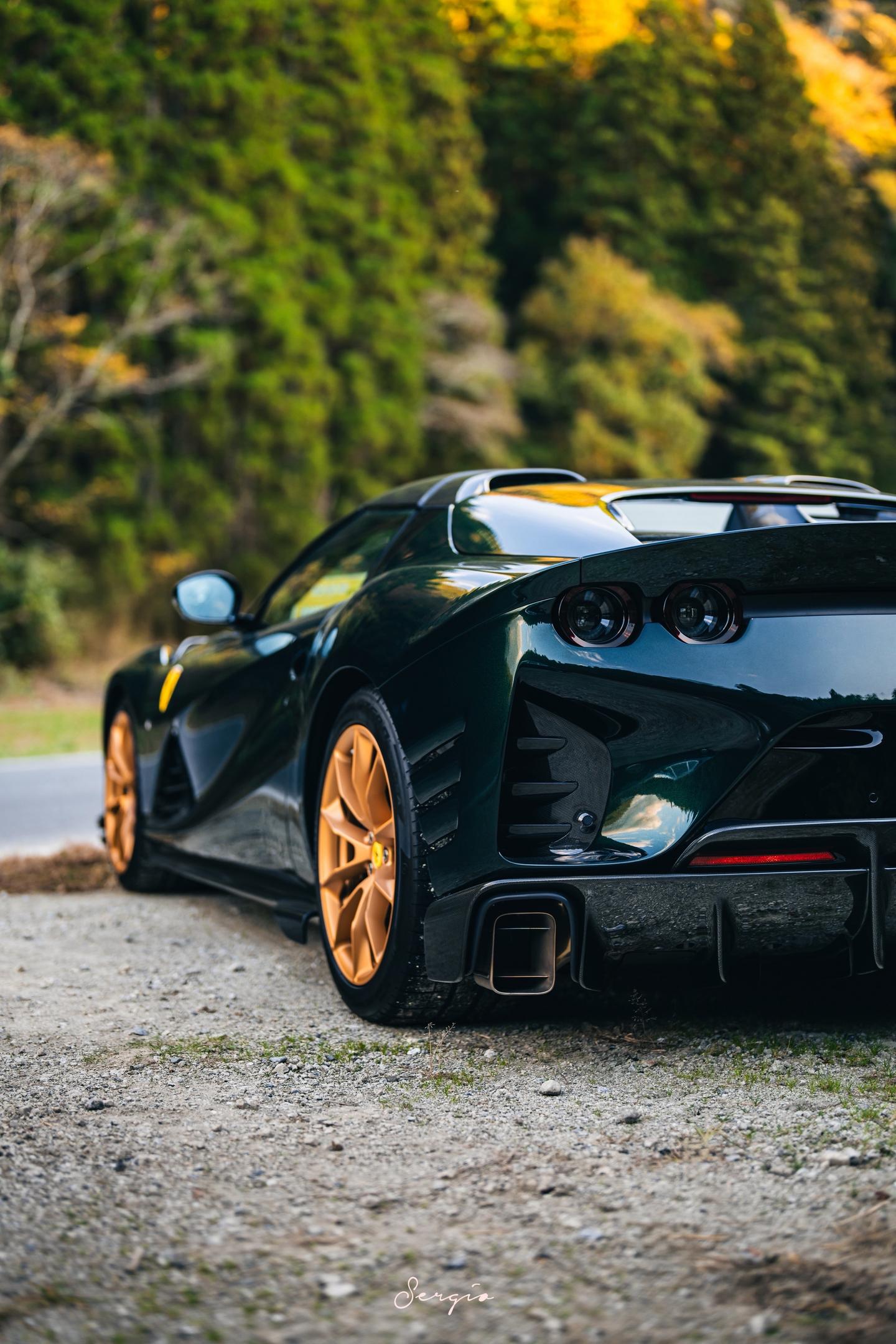 绿色金轮的812CA你们喜欢吗。Bososai时法拉利展区的一台812CA,这也是我第一次出CA的组图,这台选用了名为Verde Zeltweg的颜色配合金轮棕内,还是很漂亮的