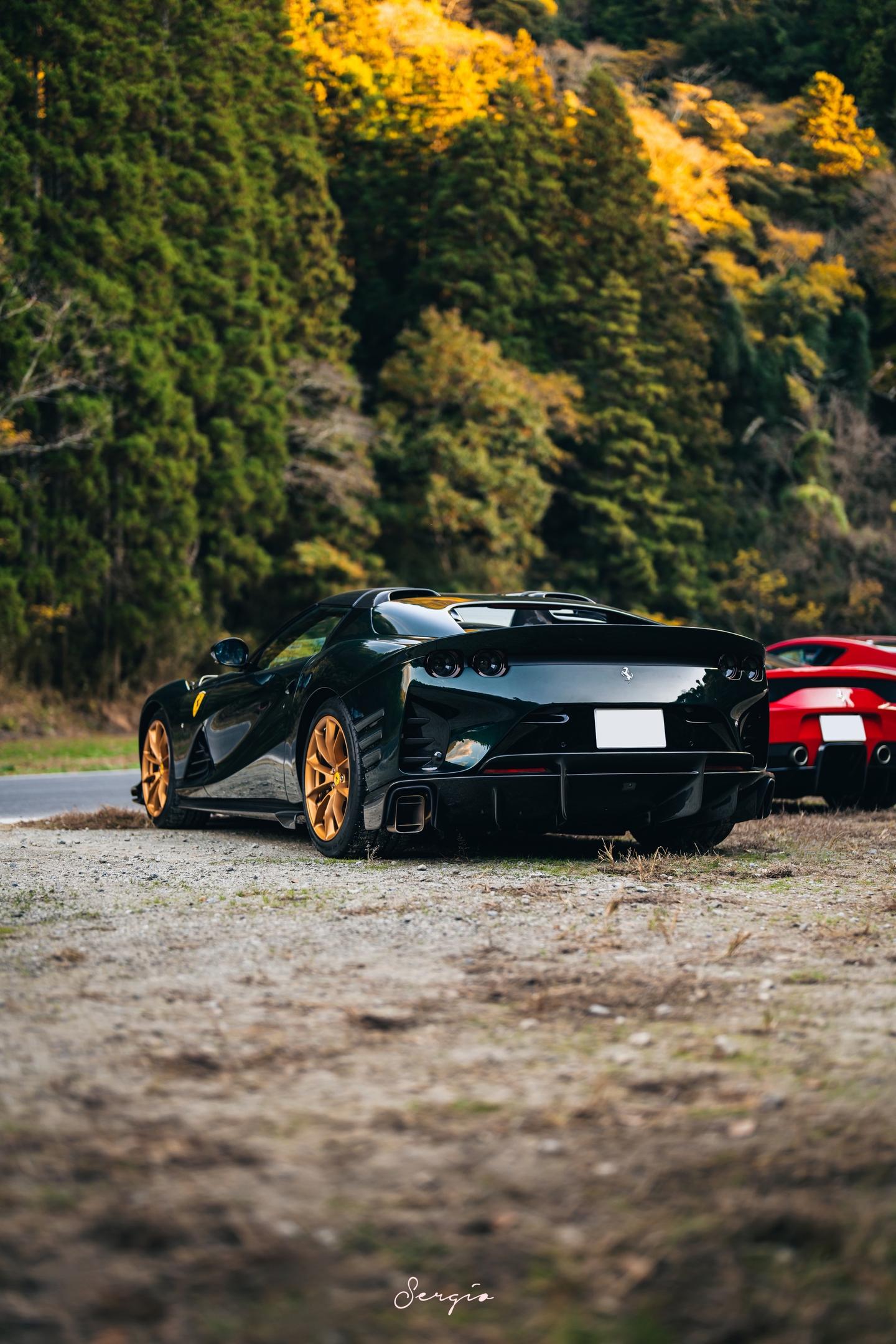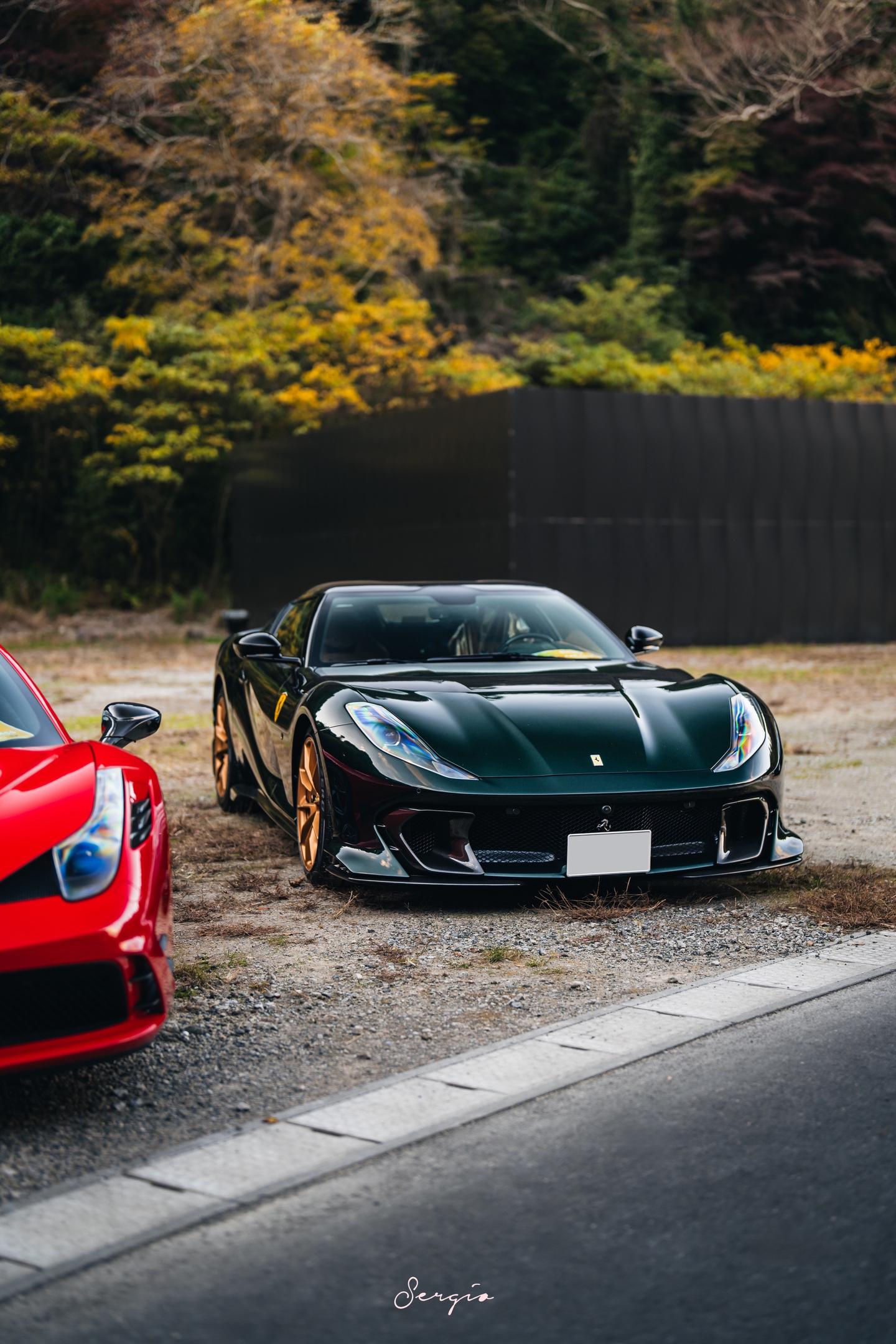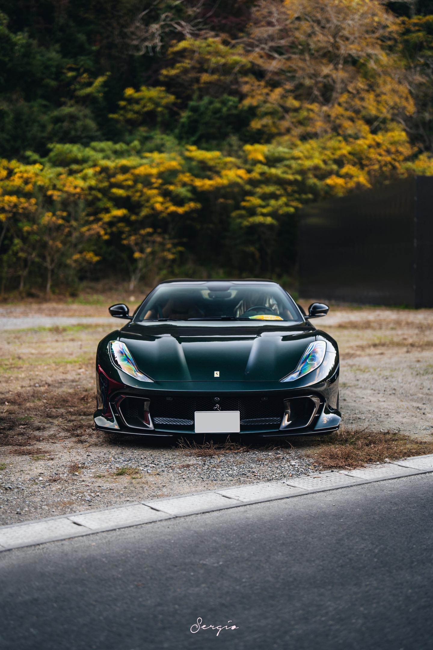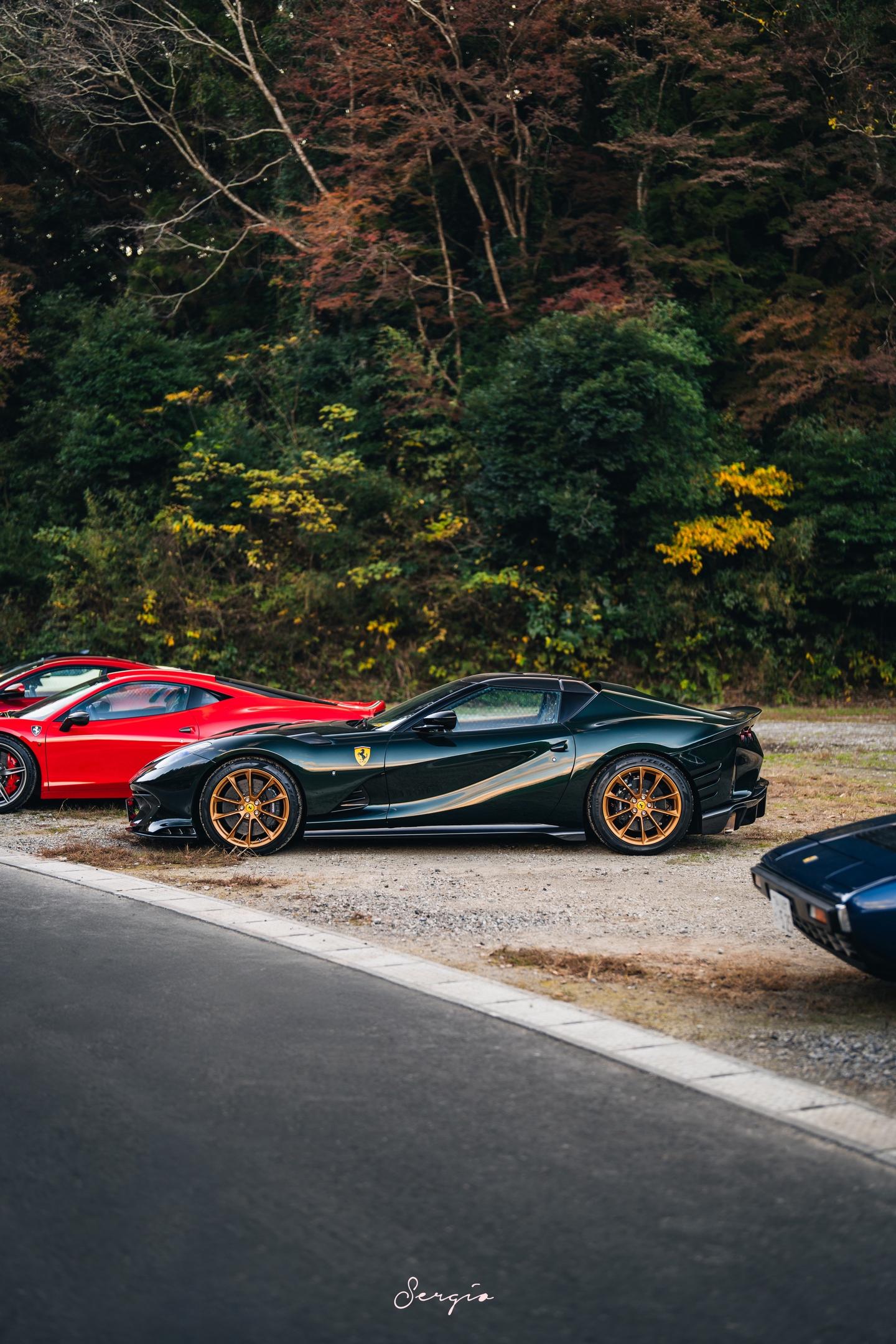 绿色金轮的812CA你们喜欢吗。Bososai时法拉利展区的一台812CA,这也是我第一次出CA的组图,这台选用了名为Verde Zeltweg的颜色配合金轮棕内,还是很漂亮的