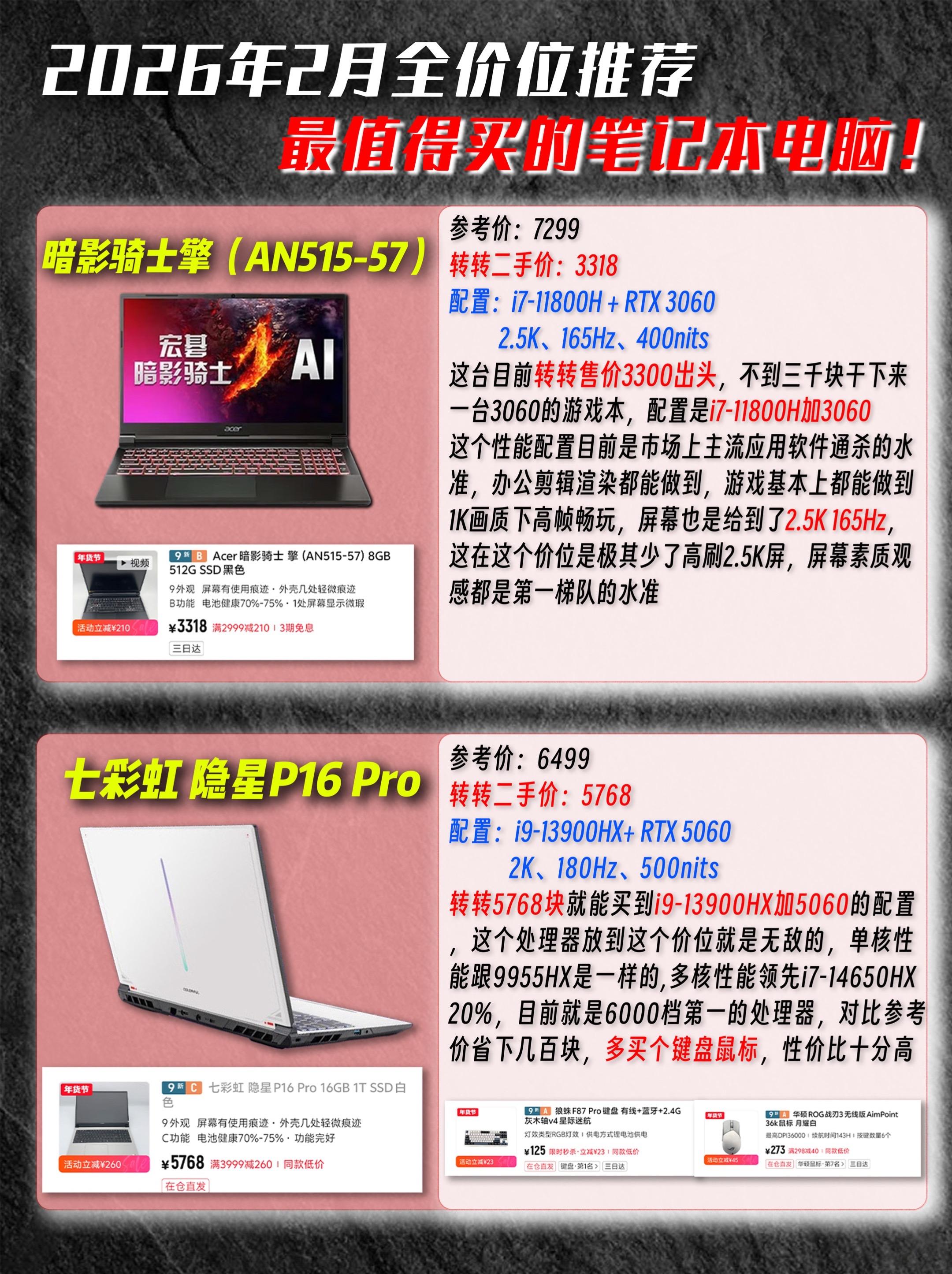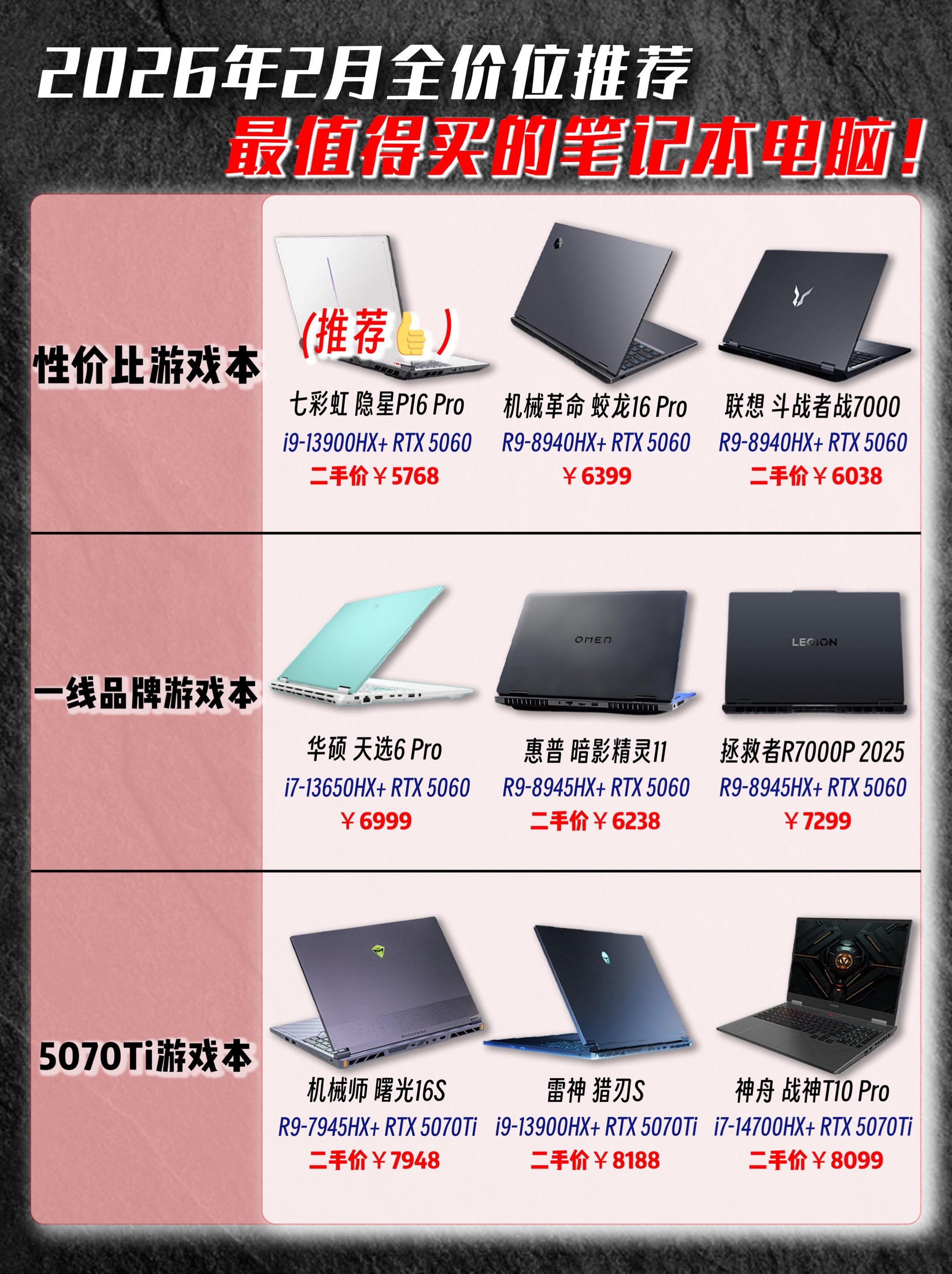 2026年2月份全价位全品类推荐。2026年2月份笔记本电脑全价位全品...