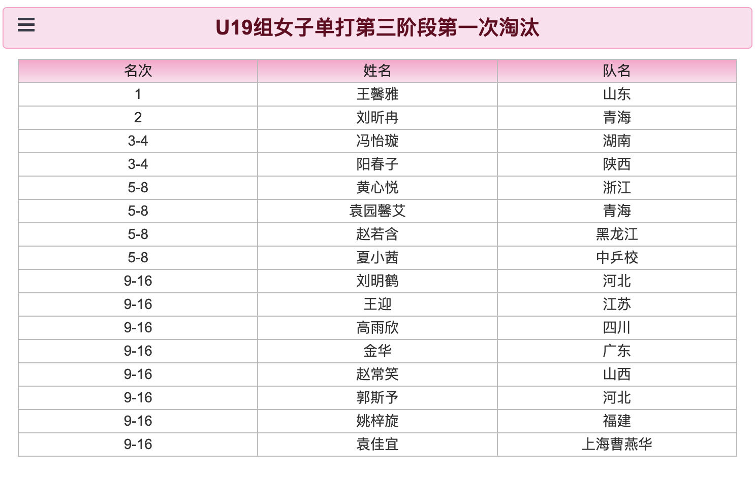2026年第二次国家青年队入队选拔赛丨U19组女子单打第三阶段第一次淘汰王馨雅(山东)