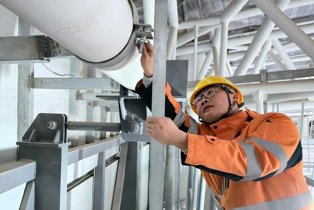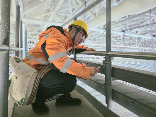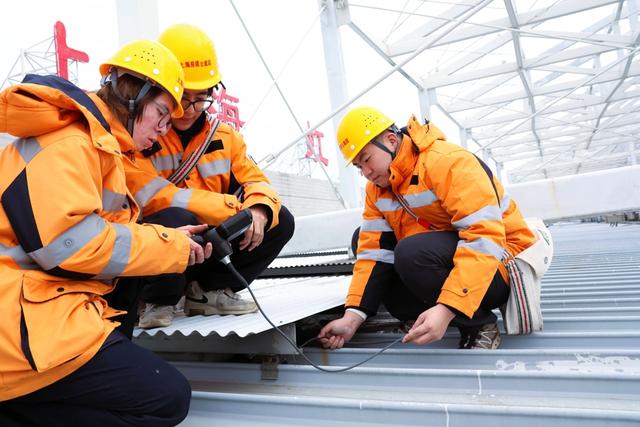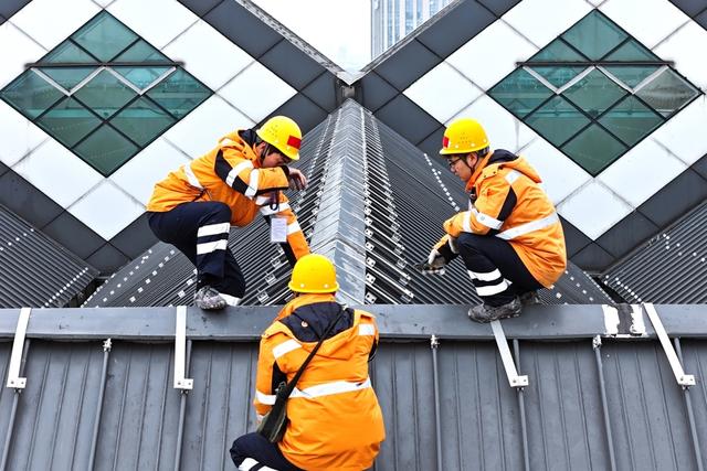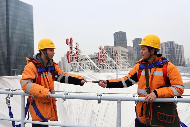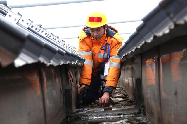 陈奕鑫则与工友夏冠鹏、潘梓翊组成“铁三角”,在寒潮中穿梭于上海站、昆山南站的各个角落。昆山南站40米高的雨棚顶,寒风呼啸,他们冻得僵硬的手指仍在仅容一拳通过的排水口,抠挖堵塞的杂物,往返两次高空作业才排除积水冻裂隐患。