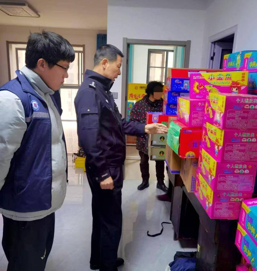 “这仓库白天没人,晚上常有货车进出。”1月4日,张湾街派出所民警在梅丰村走访时获得线索,经连续摸排,联合治安大队、区应急管理局对该处仓库开展突击检查,现场查获烟花爆竹290箱。该储存点位于居民区内,存在严重安全隐患。目前,嫌疑人孙某因涉嫌危险作业罪被依法刑事拘留。