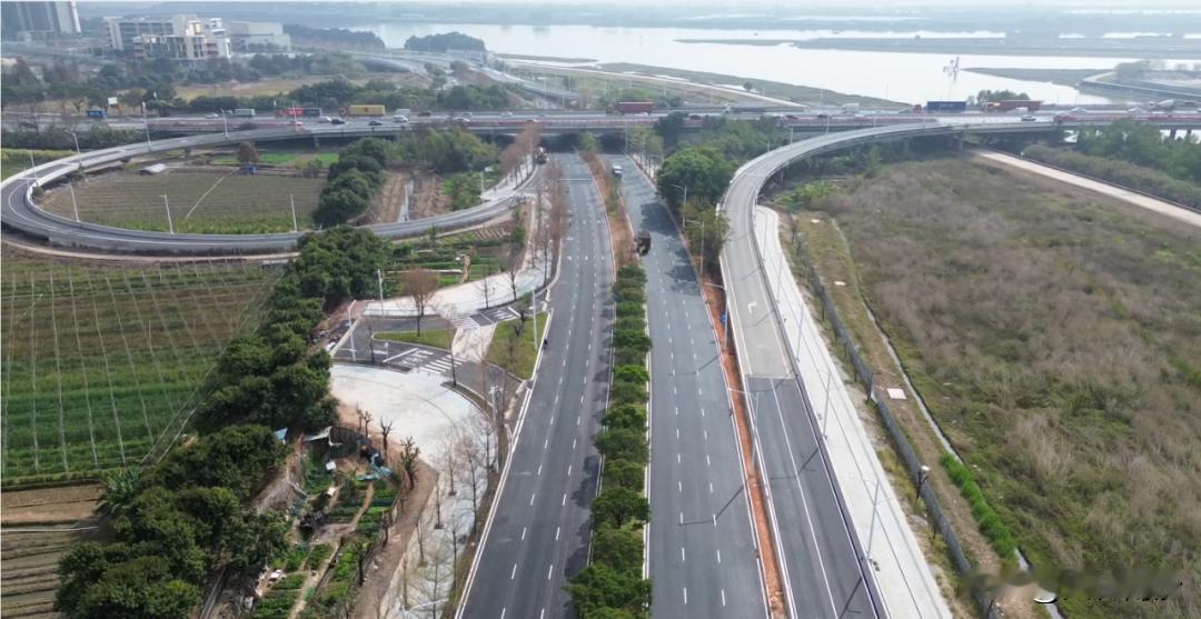 【好消息:凤亭大道(黄阁西路-亭角大桥段)贯通!坏消息:还是半成品】又到了重要时间节点,南沙的多个工程迎来了冲节点式完成。 南沙建设中心宣布2026年2月10日凤亭大道工程(黄阁西路-亭角大桥段)顺利贯通,至此,凤亭大道工程已实现全线连通。 不过需要注意的是,目前凤亭大道已经全线连通,但是部分节点受限于多个工程,依旧还是没有以完成体完成。 其中位于黄阁西路节点,采用中间双向二车道临时导行,南侧同步设置2.5米宽慢行通道,保障非机动车与行人安全通行。亭角大桥节点采取南侧双向二车道临时导行,慢行系统同步建成。该段向东通过已建便道连接亭角大桥,向西衔接纵十二路临时T字灯控交叉口,实现与周边路网顺畅衔接。 另外之前已经通车的凤亭大道东段(建设一路、规划一路附近)在坦尾大桥位置也同样是窄车道通行。
