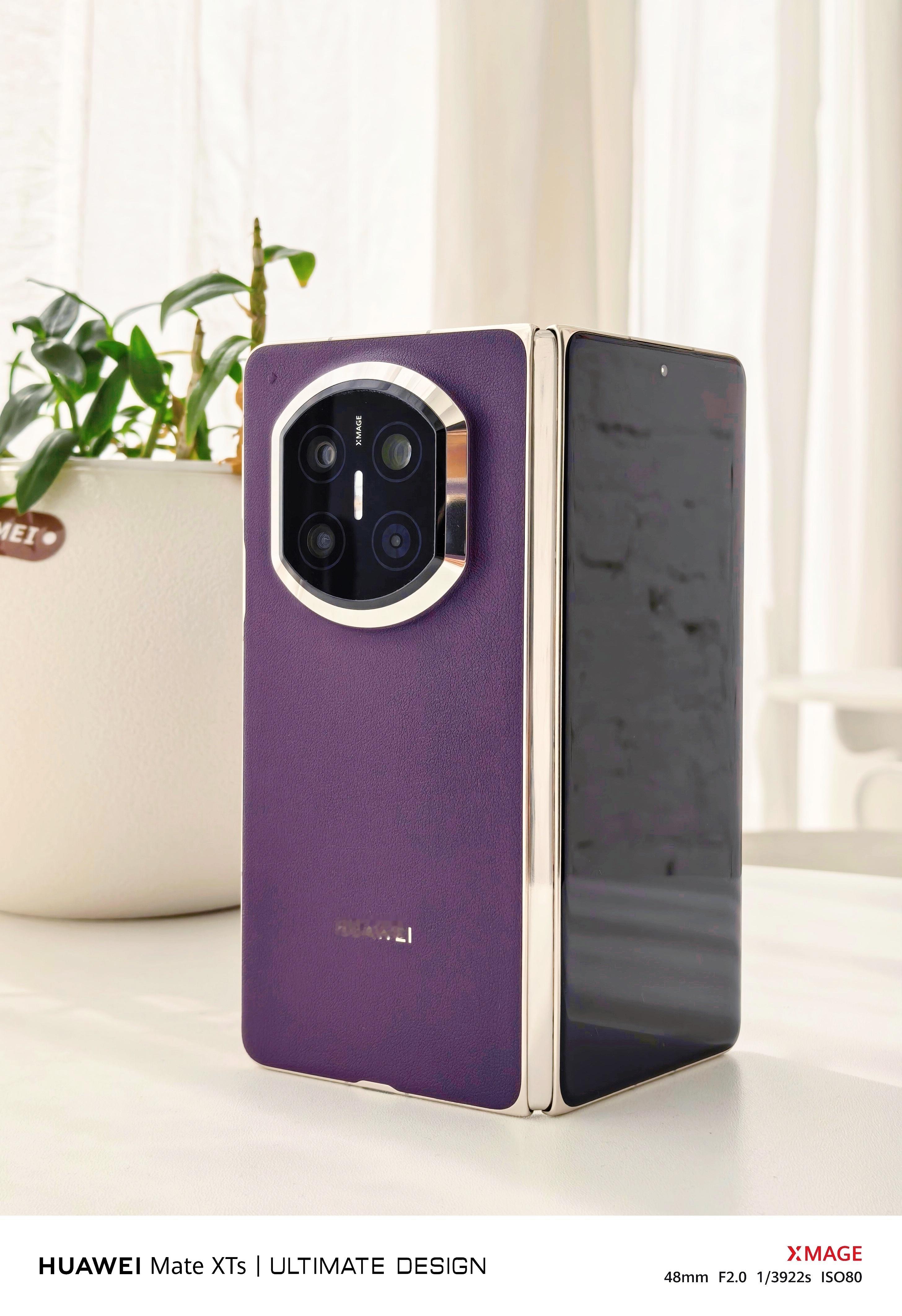 华为Mate XTs三折叠镜头下的华为Mate X7 典藏版幻影紫。这外观颜值,感觉如何呀?