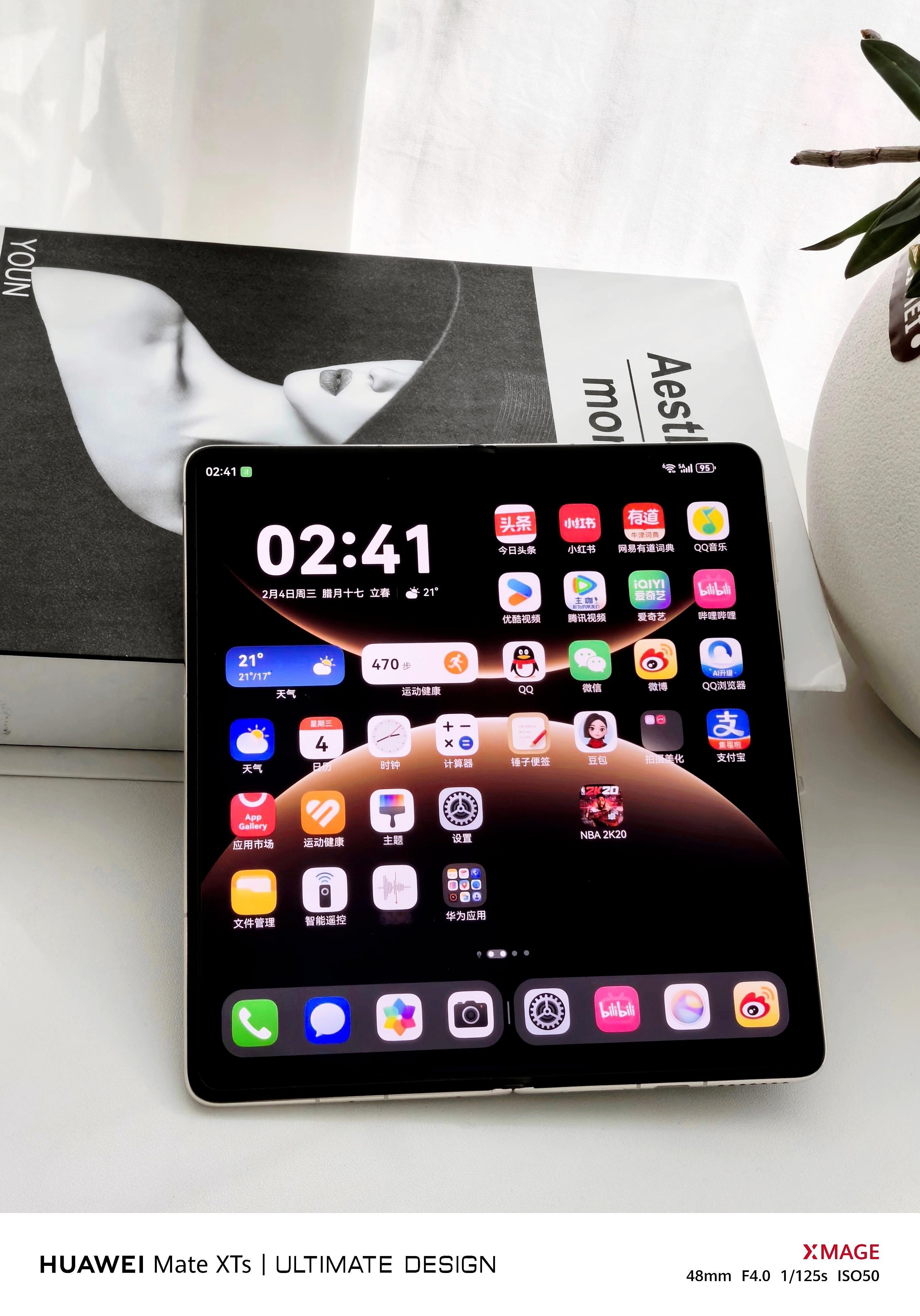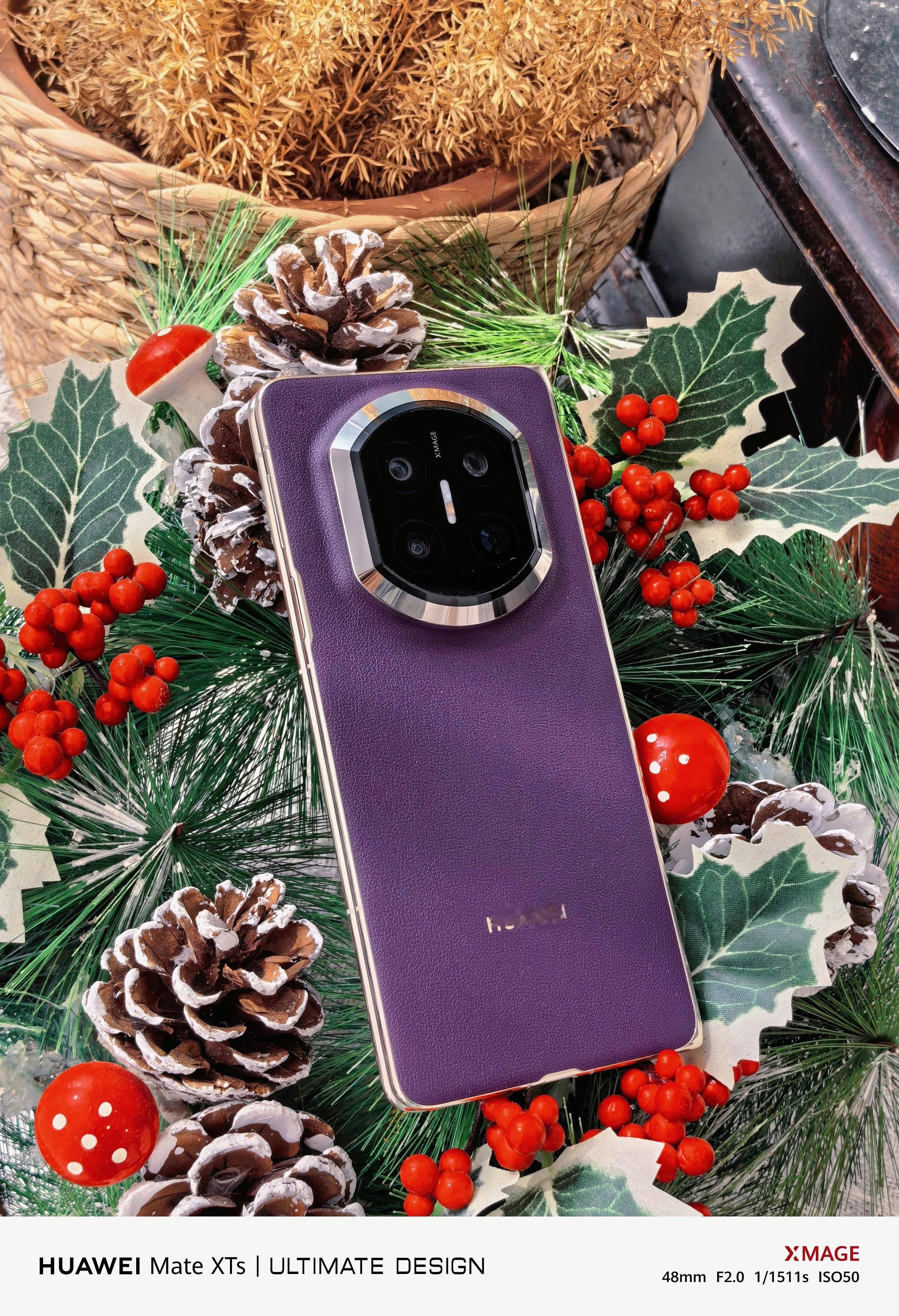 华为Mate XTs三折叠镜头下的华为Mate X7 典藏版幻影紫。这外观颜值,