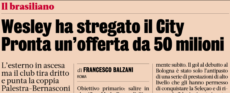曼城早在此前就长期关注韦斯利,如今更是愿意为其开出一份5000万欧元的报价,这是一笔相当可观的金额,尤其是考虑到韦斯利才刚刚登陆欧洲不久,这笔资金也可以极大缓解财政公平法案对罗马的压力。