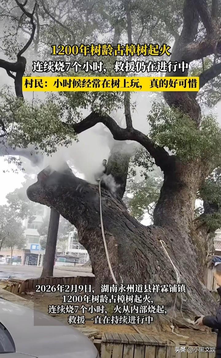 1200年古树被两个熊孩子扔爆竹烧毁! 1200年见证了多少代人,没想到居然毁于两个熊孩子之手。 湖南道县一棵树龄约1200年的古树发生火情,连续燃烧几个小时。 而究其原因居然是两个闲不住的熊孩子,往树上扔爆竹引起的火灾。 不少村民看到古树被烧,纷纷心痛不已,这是熔铸了多少代人的感情啊。