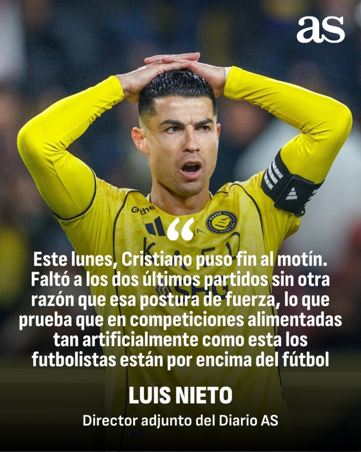 直播吧02月12日讯近期,本泽马、C罗先后罢赛,在沙特联引发轩然大波。阿斯报以《球员凌驾于足球之上》为题,发文点评此事件。