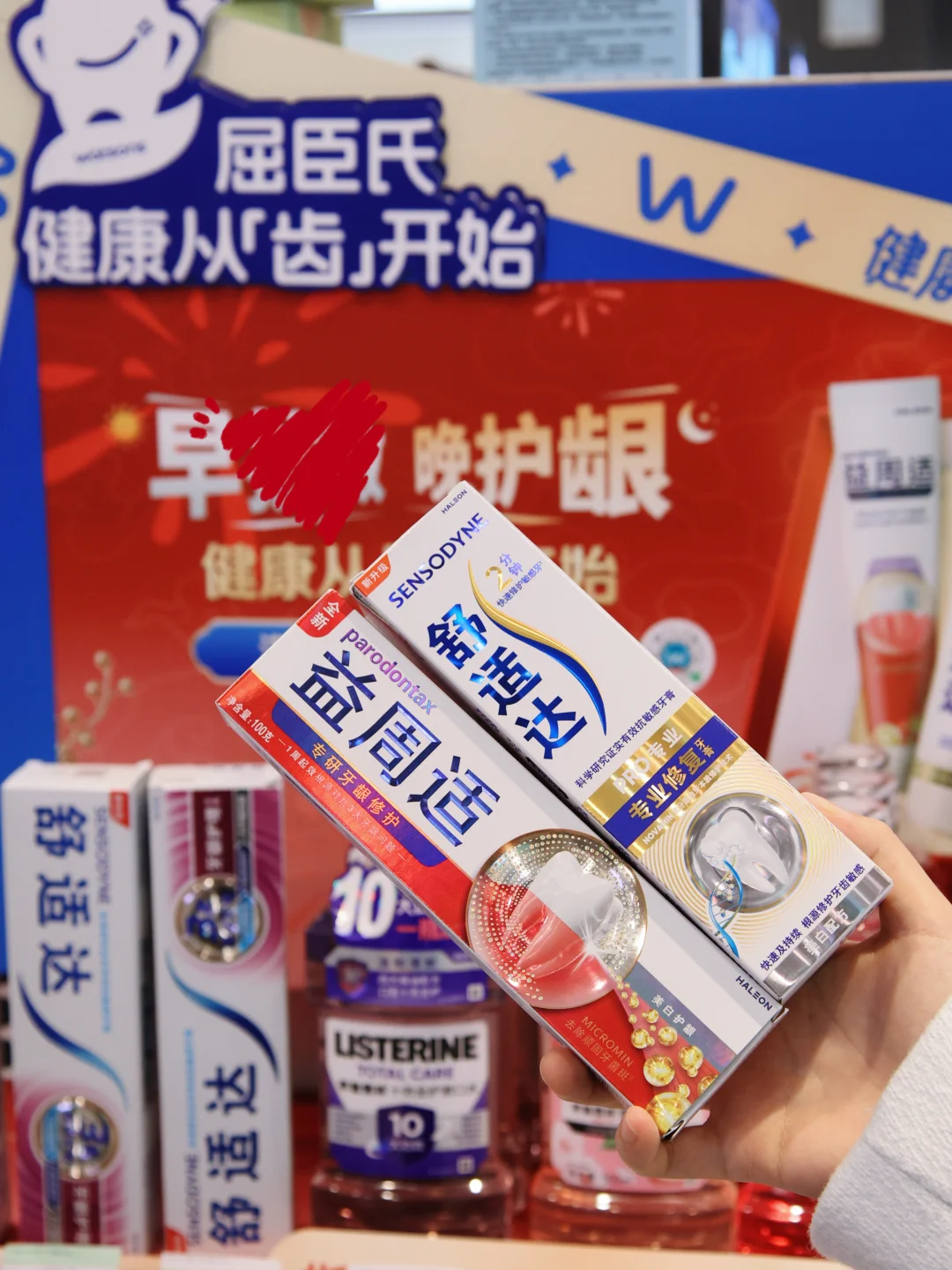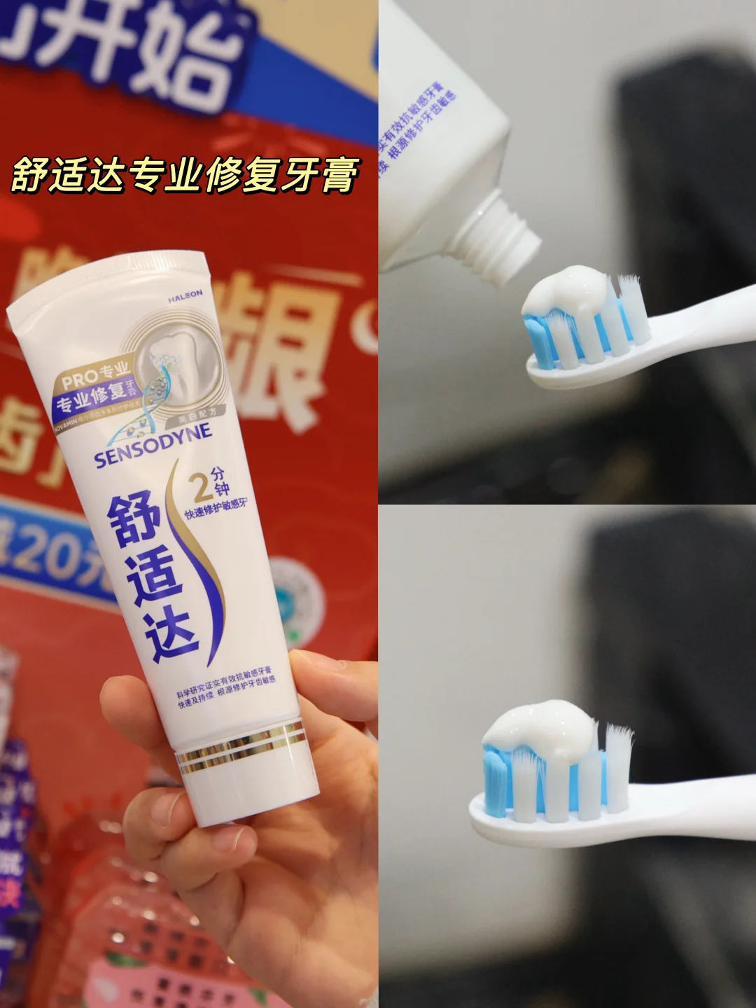 🔴舒适达专业修复牙膏 + 🔵益周适咸味牙龈牙膏