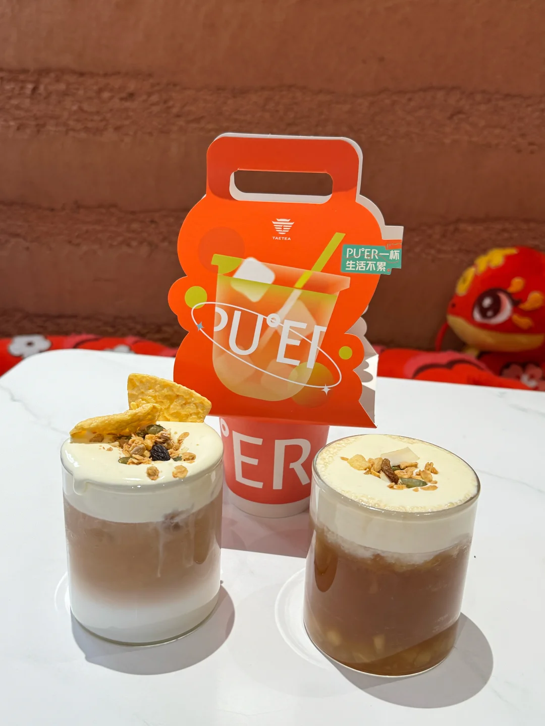 咸香芝士奶盖➕金黄酥脆玉米片🌽➕黄油牛乳与底层炭焙熟普茶🍵奶盖轻盈绵密,一点都不腻!一直在和朋友感叹怎么可以这么好喝!….🥹