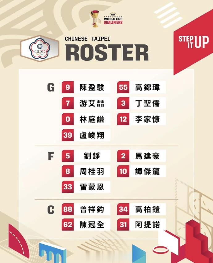 此外,中国台北男篮名单有变化,阿巴西在2月10日的训练中大腿受伤,退出了集训,潭杰龙递补。