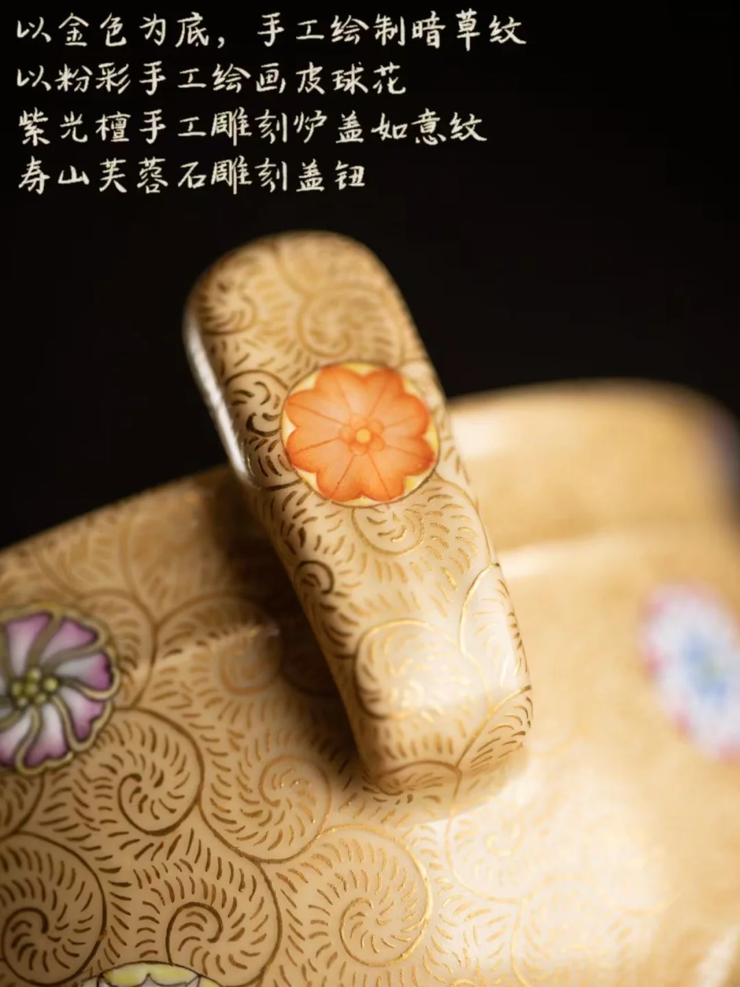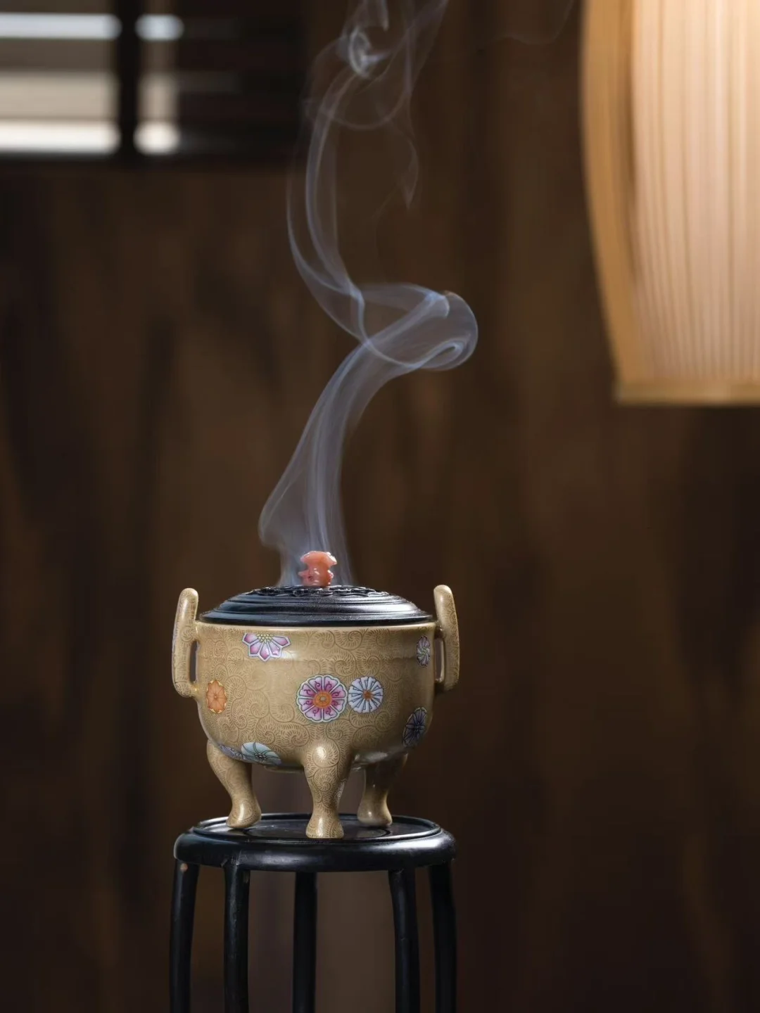 形制取自明代官窑,皮球花纹团圆美满,暗草纹底含蓄华贵。点燃时,香气如花影暗浮,寓意新年“花团锦簇”,为书房添一份内敛的吉庆。