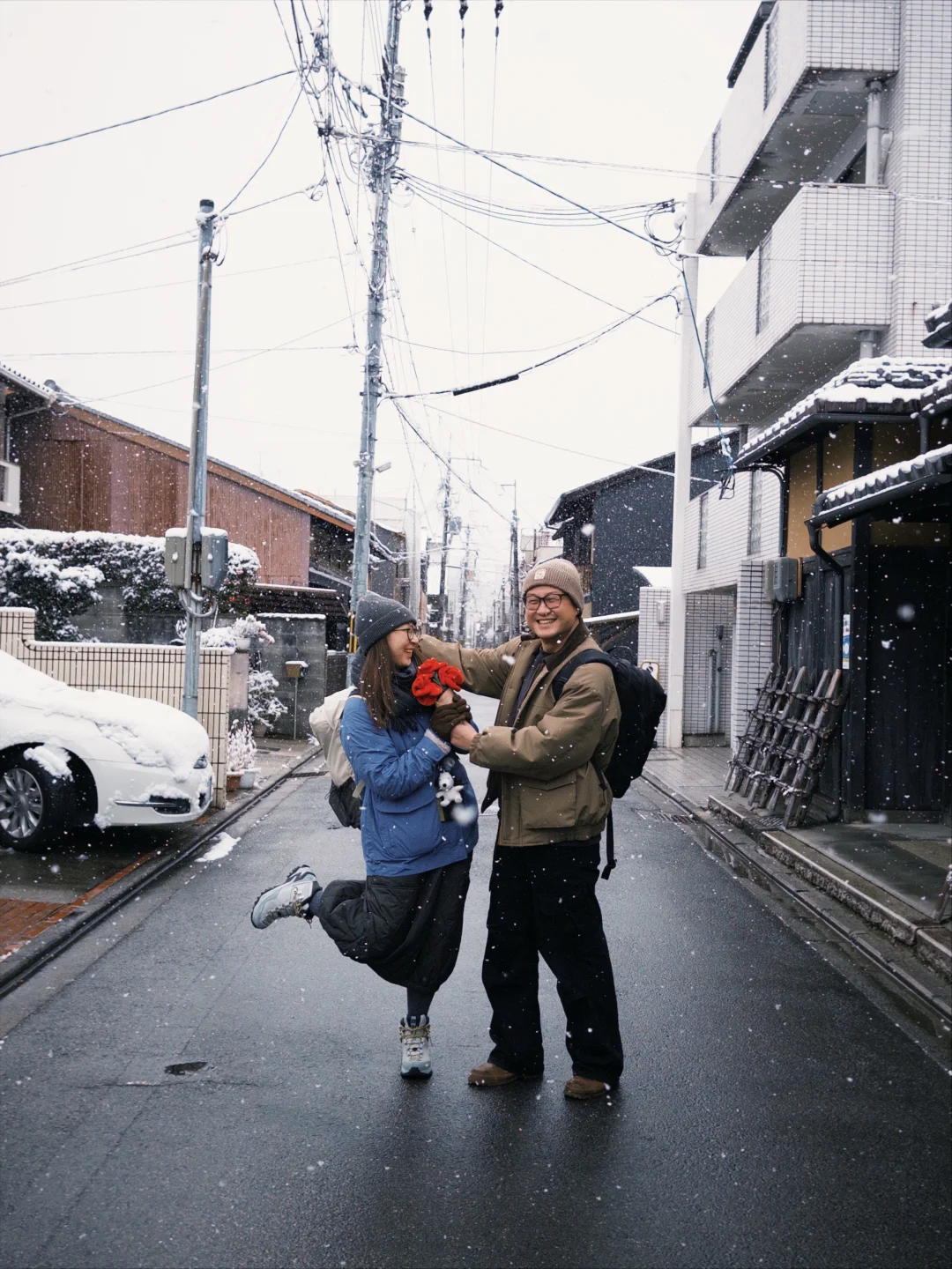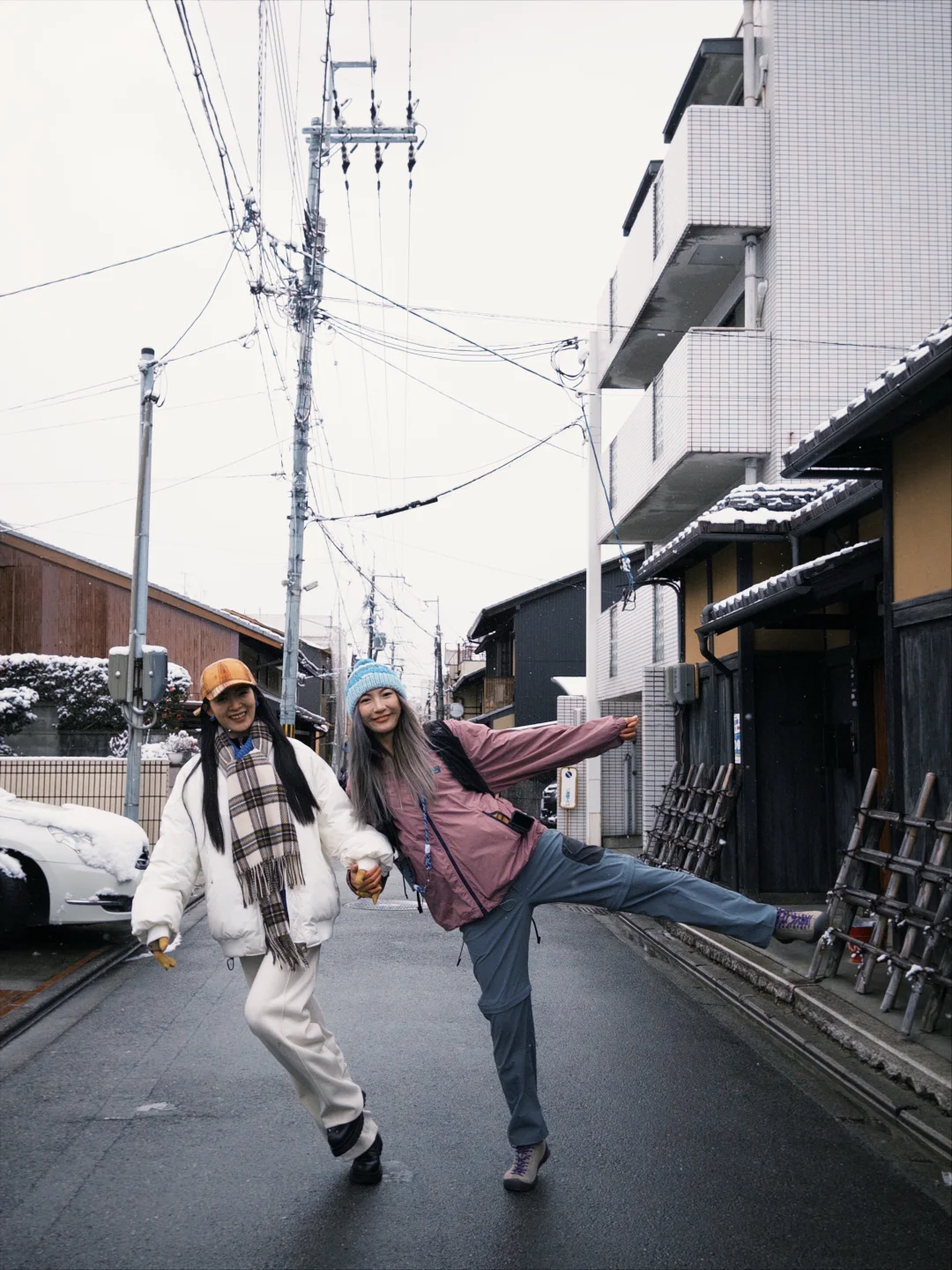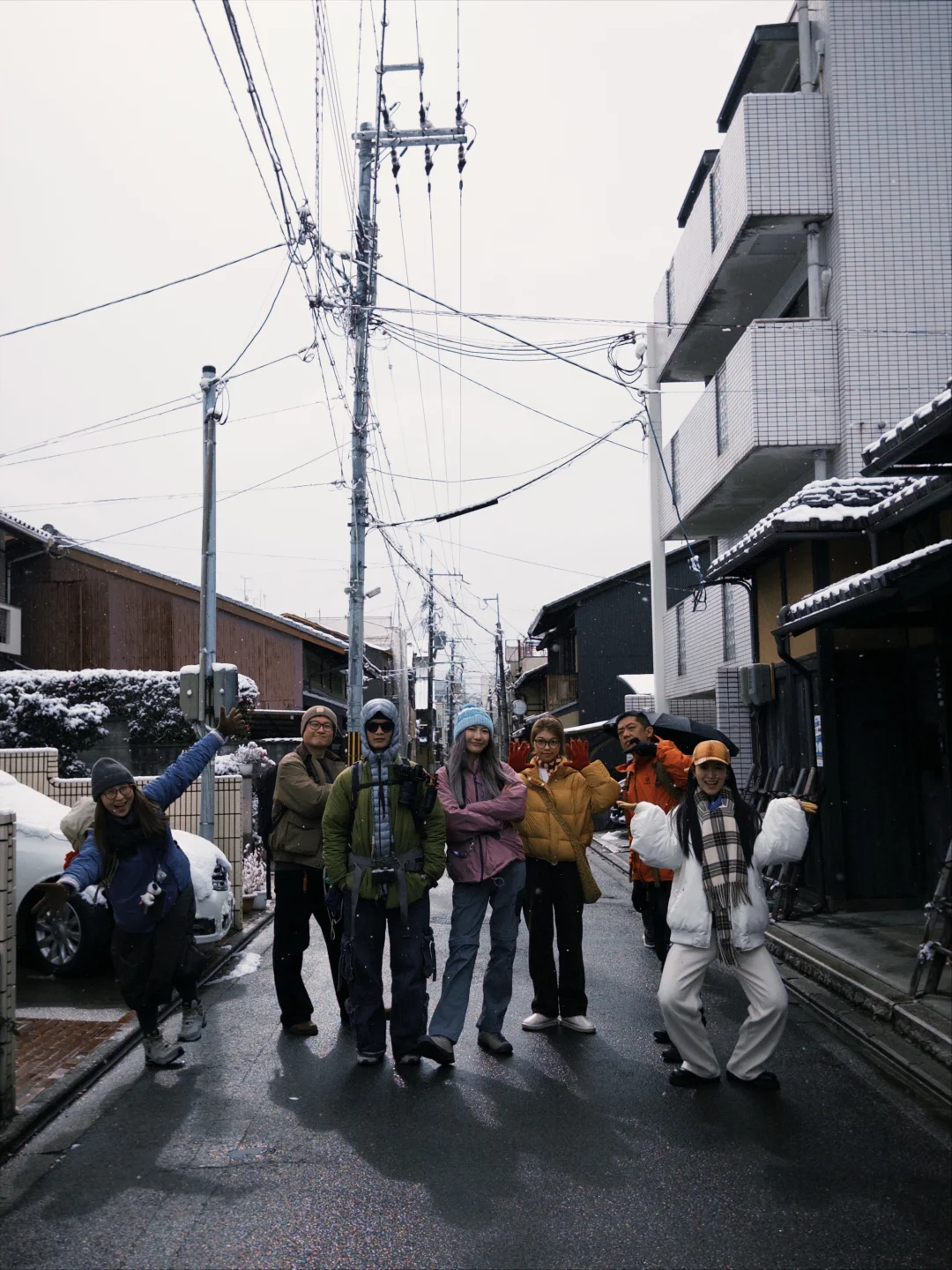 某一天,你和朋友们一起来到了下雪的京都