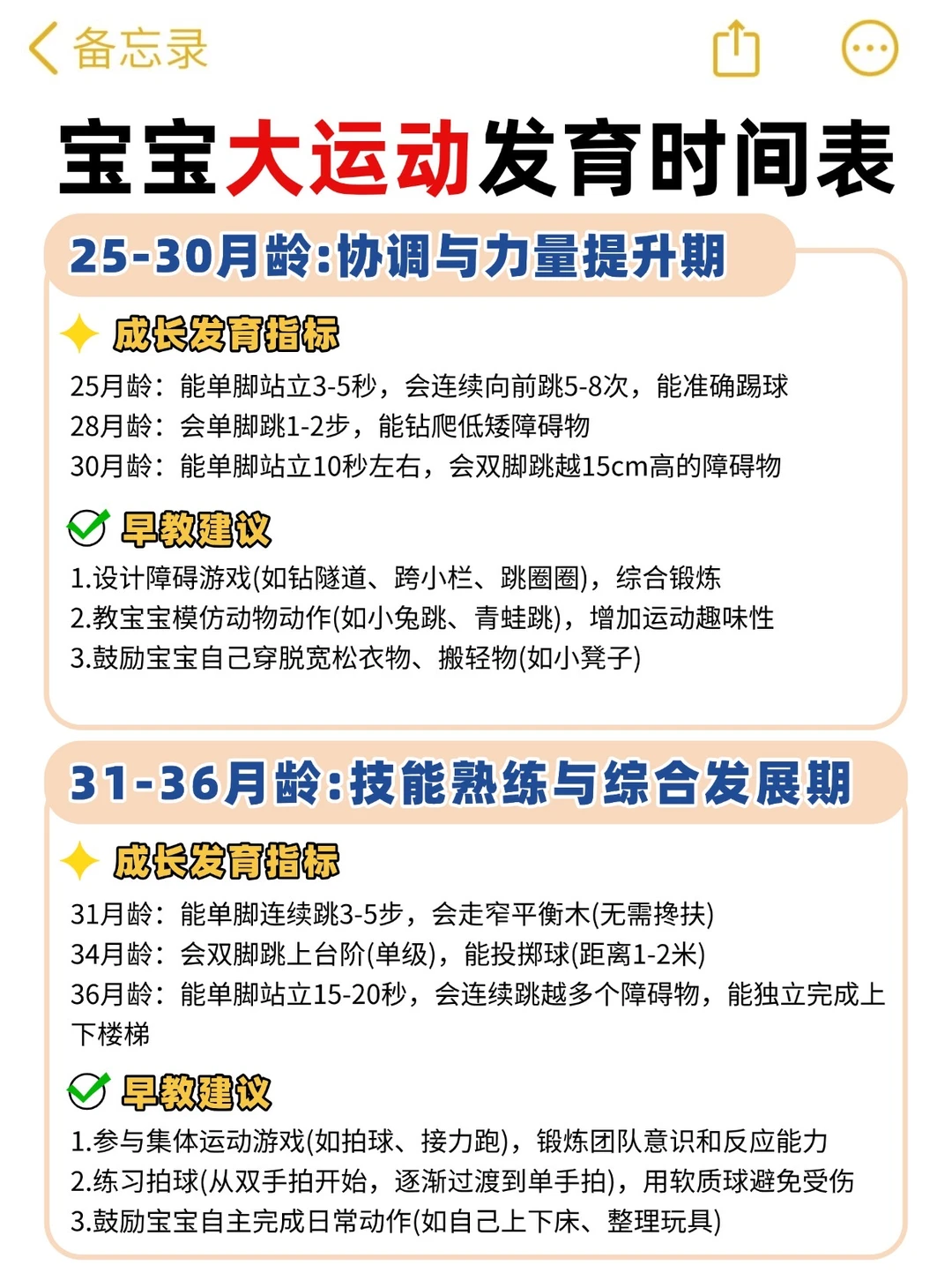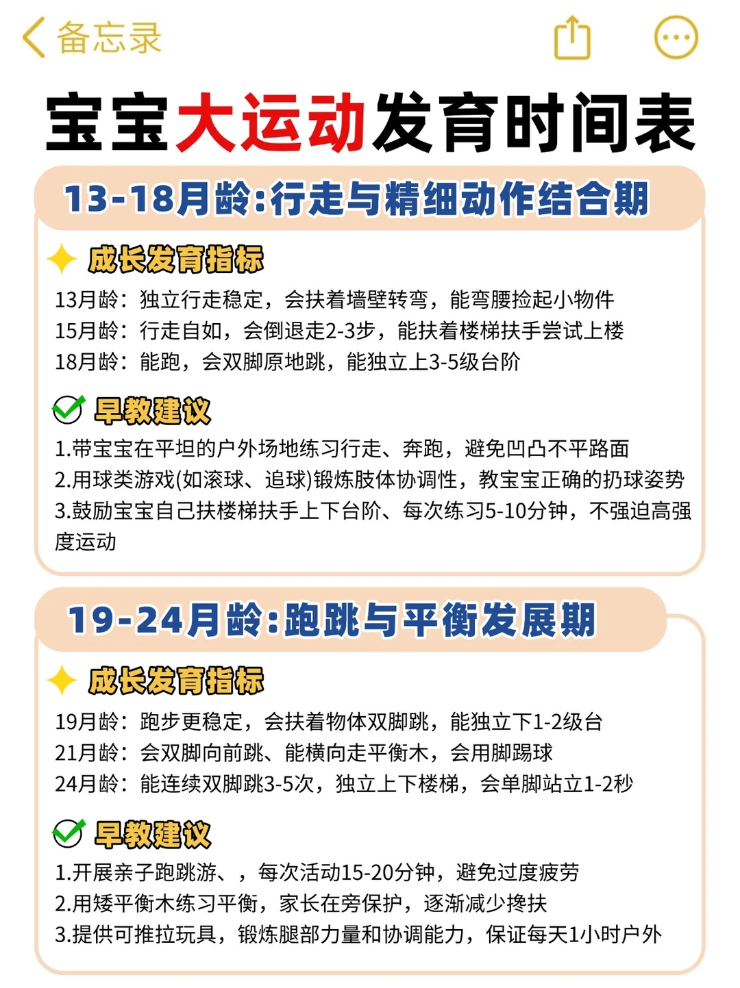 新手妈别慌!0-3 岁大运动干货收好~ 0-1 岁练趴、翻身、扶站;1-2 岁学走、爬楼梯;2-3 岁跑跳、单脚站。多陪娃顺发育练,不硬赶进度,娃自然长本事~