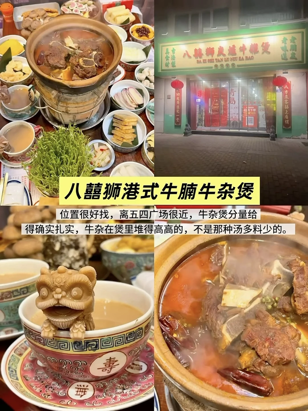 本地朋友带我去吃的!呜呜呜!!!家人们!青岛真的太太太好吃了!每家都想去第二次! 📍八囍狮港式牛腩牛杂煲 位置很好找,离五四广场很近,牛杂煲分量给得确实扎实,牛杂在煲里堆得高高的,不是那种汤多料少的。 📍燕琴酒楼(栈桥店) 工作日早中午都坐滿的良心小店,位置好找得车方便,老青岛炸肉外酥里嫩,海鲜鲜甜暖胃,服务周到。 📍麻辣老王蹄花·冒肚局(万象城店) 万象城解馋首选,冒肚配软糯猪蹄绝配,猪蹄香糯,毛肚脆爽汤底浓,量大味美实在环境很好,出门就是五四广场地铁站,交通很方便。 📍升海餐厅 这家海鲜店在石老人很有名,生蚝个大饱满,蒜香入味,用餐体验超出预期。 📍晓川香木桶鱼(江西路店) 味道超级好,辣椒炒肥肠太美味了,排骨也超级好吃,食材新鲜多样,菜品卖相好,服务态度好,交通也十分便利,离五四广场很近。 📍粥全粥到 绝对是用心做菜的店,能尝出来。不是预制菜的味道,是家里的火候和心意。 📍包鲜生·小笼包馄饨 小笼包手工现包皮口感好韧,馅新鲜调味平衡咸鲜带甜汁足不油腻,馄饨汤底浓。 📍老爹面馆(中山路店) 逛累了来吃面,太惊喜!中山路这家位置非常好找,价格也很实惠,很大一碗面,料很丰富,特别好吃,很鲜美。 【潮湃旅记】请别误判