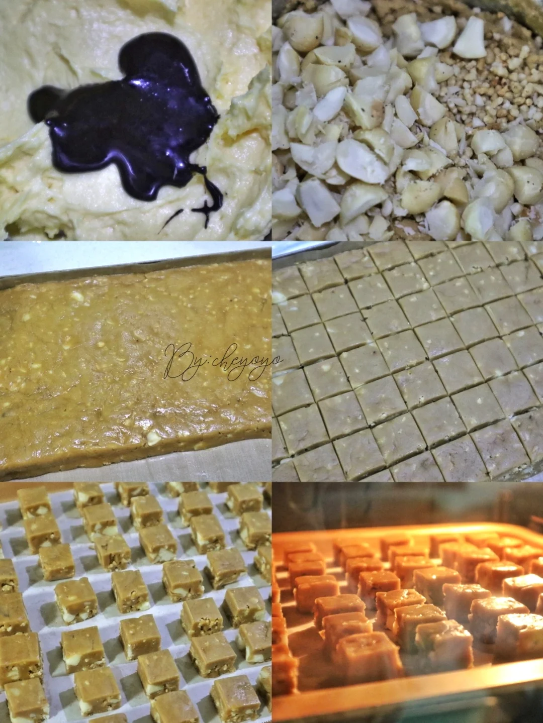 4️⃣ 切成1.5cm的小方块,均匀摆到烤盘上,送入155度烤箱烘烤25分钟,出炉放晾网上冷却就OK啦❤