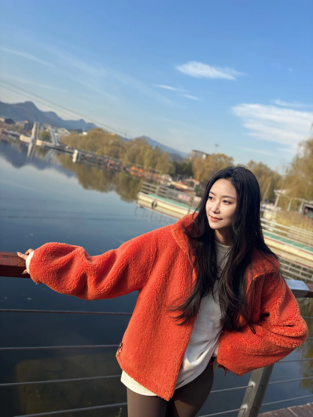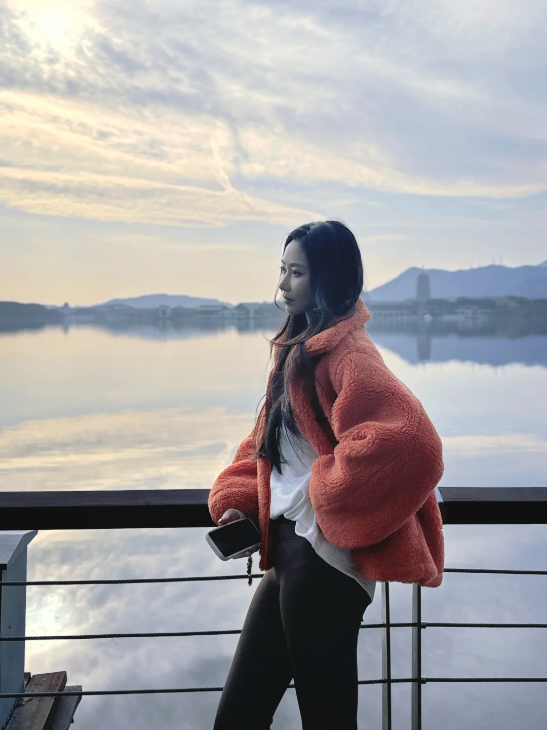 冬季的雁栖湖依旧这么美,清晨薄雾中的湖面像水墨画,拍人像自带仙气滤镜。