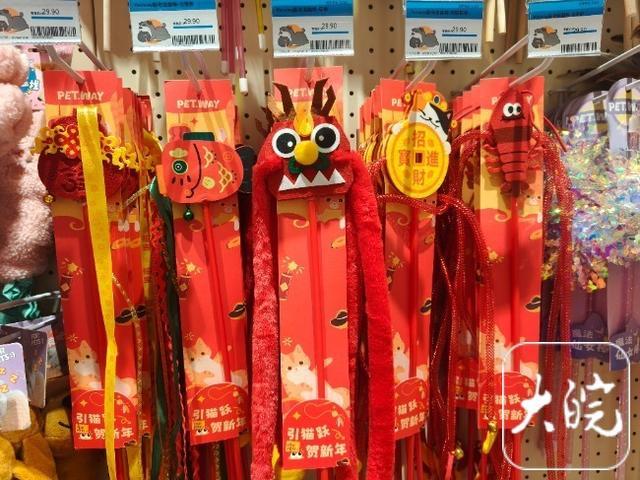 除春联外,宠物年衣、马年限定围脖、宠物年夜饭、新春玩具等也迎来热销。2月12日,记者在探访宠物店时看到,逗猫棒、年衣均被商家摆在了店面的显眼位置,有商家提供188元的宠物春节大礼包,零食、装饰、玩具一应俱全。