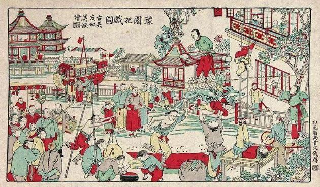 贴年画是春节求吉仪式的重要内容。年画的雏形可以追溯至汉代的门神画,正式出现于五代、北宋之际,在明清时期发展到鼎盛,形成了不同的艺术风格和明显的地方流派,苏州桃花坞年画是代表性的江南年画流派。清代康熙年间,上海出现了模仿桃花坞年画的民间年画产业,集中于因明代演武场而得名的旧校场路。清末,受太平天国运动的影响,桃花坞年画商人和工匠南下避乱来到上海,促进了上海年画产业的发展,形成了具有海派特色的“旧校场年画”(也称“小校场年画”)。