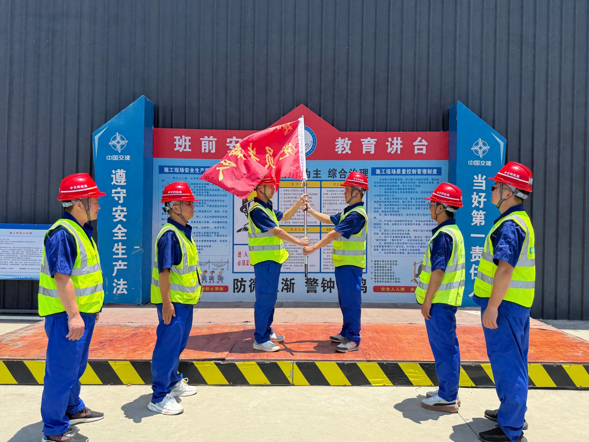 “我们以创建‘先锋旗手’党员突击队为抓手,将党建工作与施工生产同部署、同推进、同落实,精准融入施工全流程、各环节,为每名党员划定责任区,引导党员在一线挑重担、当先锋、作表率,让党旗在项目建设一线高高飘扬。”中交四航局项目党支部书记曹文进介绍道。为推动党建引领走深走实,项目党支部立足工程建设实际,创新构建“区域—工序—风险”三维网格化责任体系,将施工区域科学划分为7个党建责任网格,每个网格由党员骨干担任网格长,吸纳施工员、安全员、质检员组建专业化管理团队,健全“党支部—网格长—党员—群众”四级责任链条,实现安全监管、质量把控、进度管控、技术攻坚等各项工作党员牵头、全员参与、闭环落实,以党建红赋能工程蓝,为项目提前通车筑牢红色根基,在施工过程中荣获“温岭市工人先锋号”等荣誉。