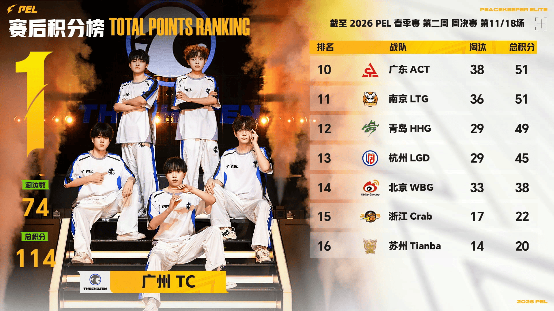 21分钟,TC被淘汰,今日分数止步119;25分钟,TT淘汰WBG,随后ACT赶到将TT淘汰。决赛圈ACT/AG/LGD交火,