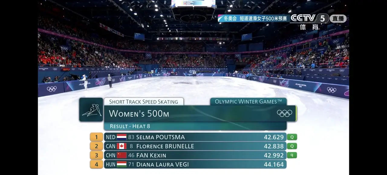 今晚范可新、张楚桐、王欣然三人携手出战短道速滑女子500米冲击半决赛,预赛全员晋级,状态在线。预赛成绩:王欣然:第3组,43.246秒小组第一,稳守内道、临危不乱,冬奥首秀亮眼