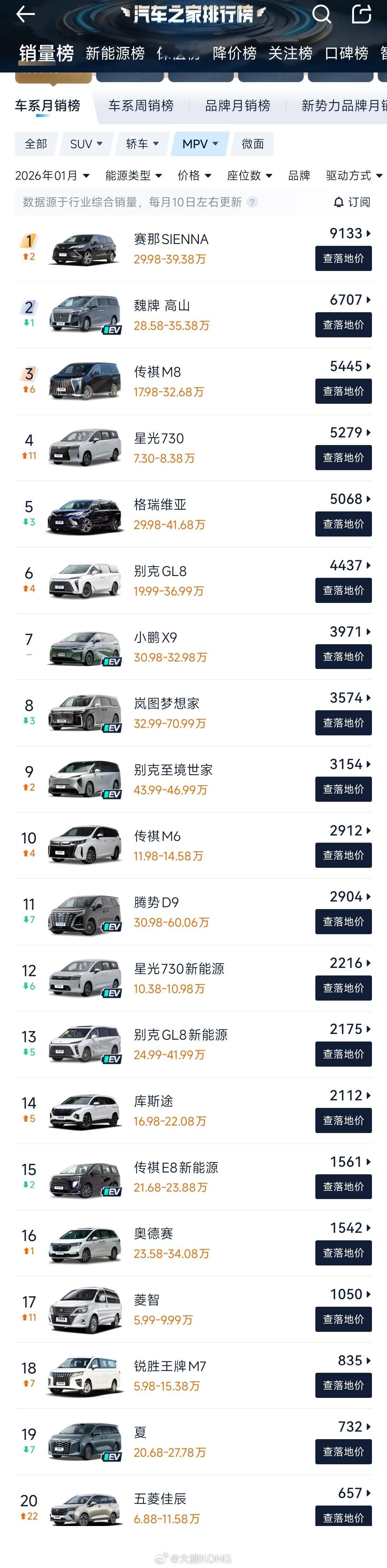 一月份的销量榜太有意思了 巨头倒下 油车反攻 互相之间贴的又很近 MPV