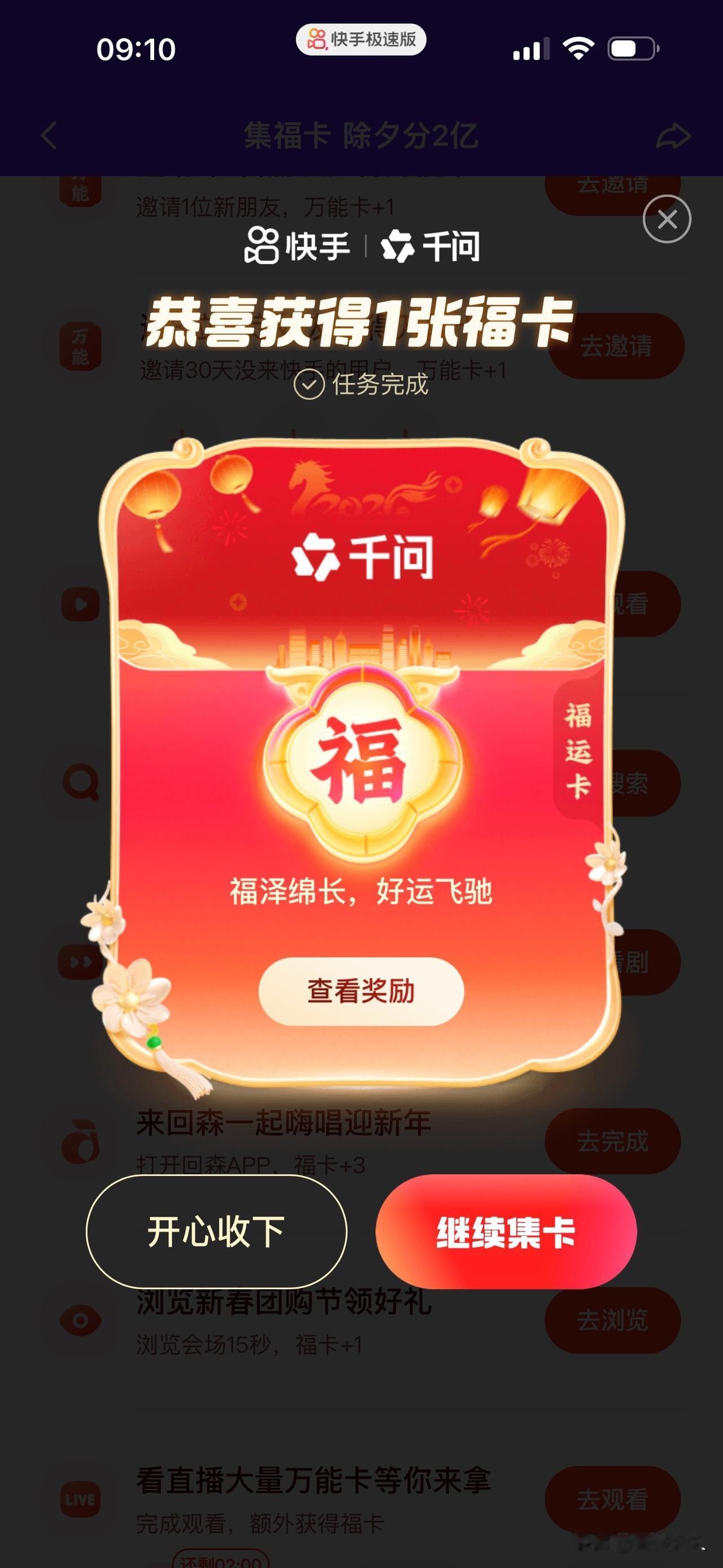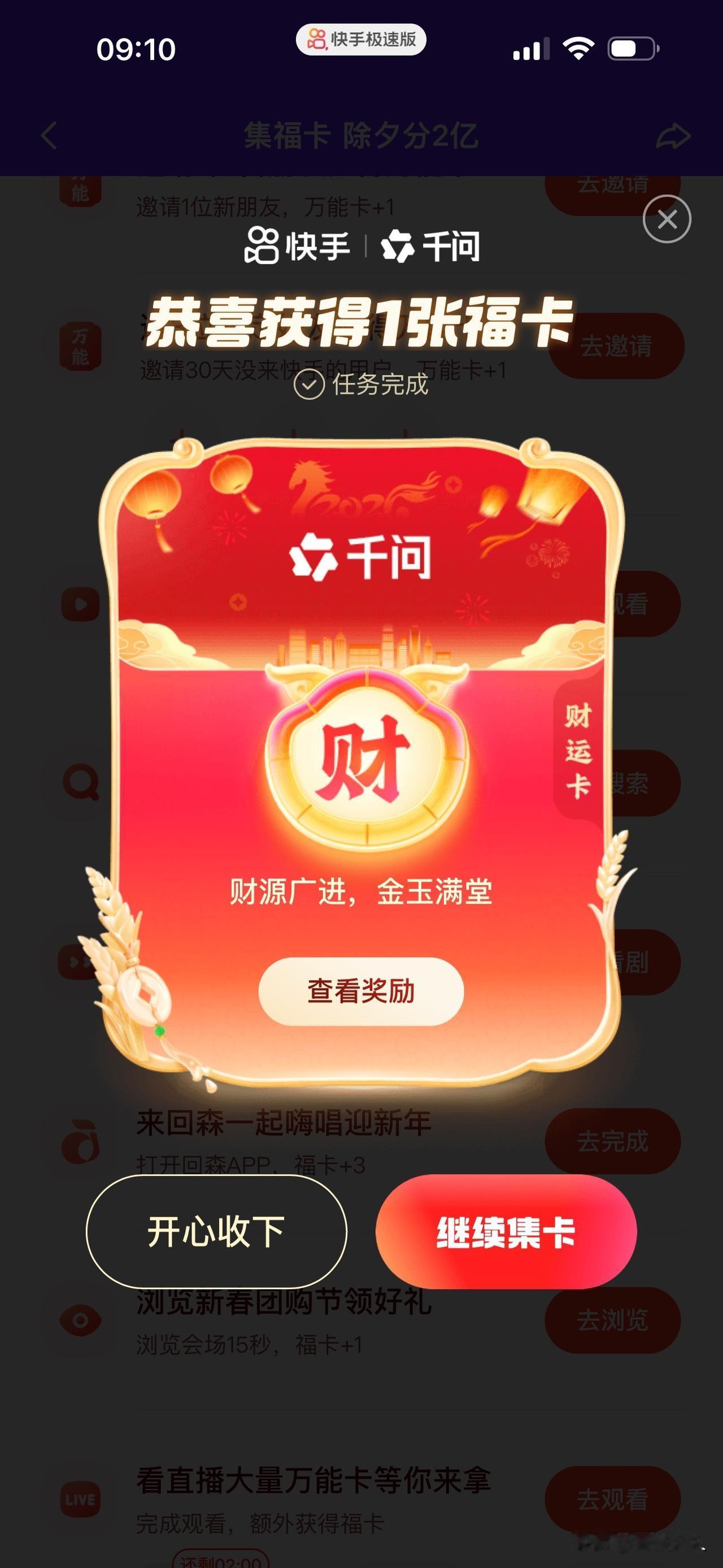 天南地北大拜年不得不说,快手是端水大师啊!摇钱树广告全是元宝,但是集卡全是千问!