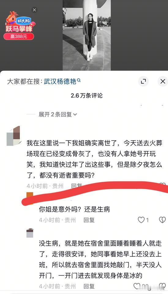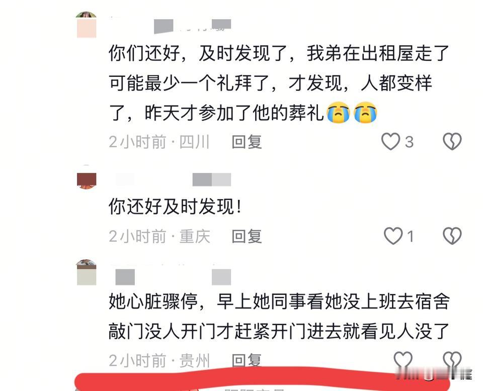 这位28岁的美女保安,2月2日还在发视频,可如今已变成一盆小小的骨灰!她在睡梦中离世,连一句话都没有机会留给亲人,就匆匆离开了! 根据其亲人公布的信息,她是贵州人,名叫阿艳,在武汉武昌区的一家公司工作。 她是一名女保安,平时的工作需要和同事们轮流上晚班。 悲剧是2月9日发生的,当天一早,她迟迟没有起来和夜班的同事交班,一个同事便心生疑惑去宿舍找她。 推门进去一看,才知道她身体都已经凉了…… 阿艳的妹妹表示:在此之前,姐姐并没有生病。因为当天晚上,姐姐还和她的丈夫视频了,那时候两个人有说有笑,姐姐的状态也非常好。 没想到,这事过去仅仅几个小时,家里人便接到了她人已经不在的消息。 今天是大年二十五,阿艳的遗体已经在武昌区火化了。现如今,她的丈夫和父亲已经将她的骨灰带往贵州。明明再过两天时间就是春节长假了,原本这么好的日子里,她是该打扮的漂漂亮亮回到老家去和亲人一起团聚的。可如今,她再也没有机会了…… 生命有时候真的太脆弱了,我们能做的只有珍惜每一天! 希望大家在平日里,一定要多加注意身体,尽量不要熬夜。一旦身体不适,记得及时就医。 这个年仅28岁的女子,真的让人莫名心疼,她社交账号里的那一句个性签名竟一语成谶了![祈祷][祈祷][祈祷]