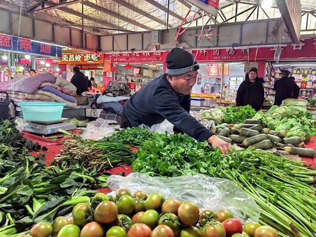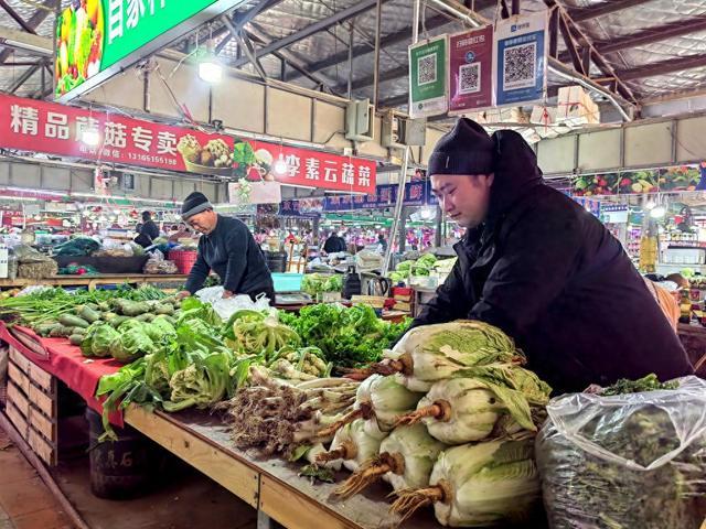 一旁紧挨着的是苑先生的菜摊,他在即墨包了6亩地专门种蔬菜,摊位上的蔬菜大多是他自己种的。“菜在地头批发走一部分,剩下的还得自己摆摊卖。”苑先生说,以往他一大早就拉着蔬菜去李沧、城阳的大集卖,中午散集后,就继续找个人流量大的路边卖菜。