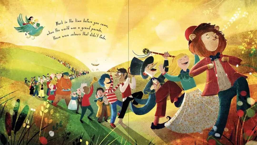 在小女孩出生前,奶奶告诉她,天空中有大象。婆婆描述了魔法消失前的世界:海底的王国,火星上跳舞的女孩,以及在金绿色田野里跳舞的盛大的光明和欢乐游行。