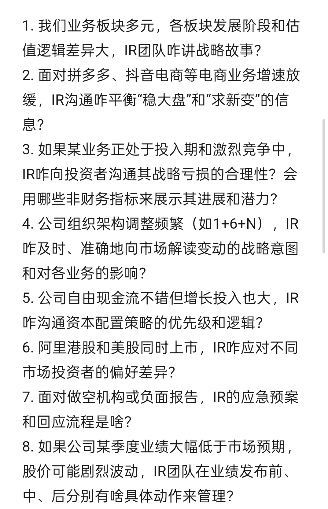 2. 面对拼多多、电商等电商业务增速放缓,IR沟通咋平衡“稳大盘”和“求新变”的信息?